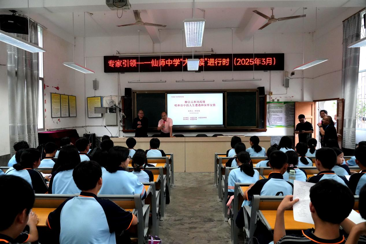 講座邀請永定區文聯主席何文生為學校師生帶來了一場主題為《柳宗元和劉禹錫3首唱和詩中的人生遭遇和深厚友情》的專題分享會。
