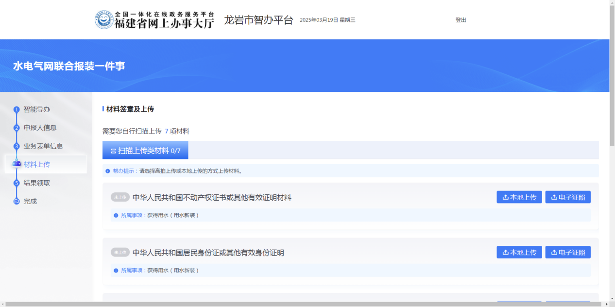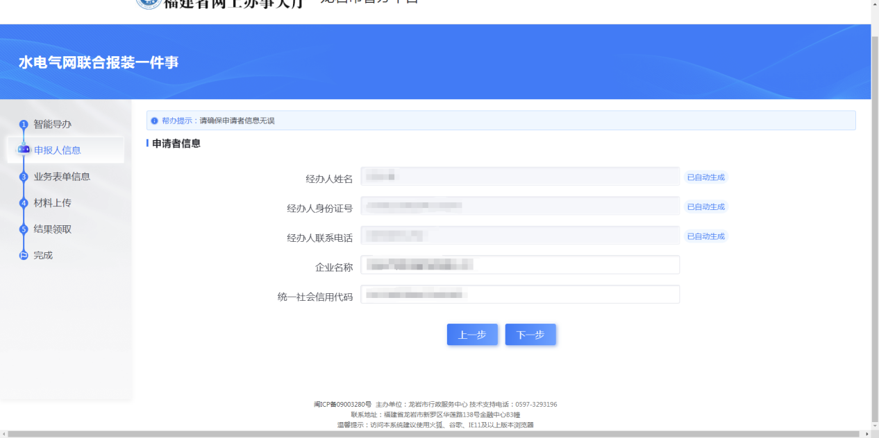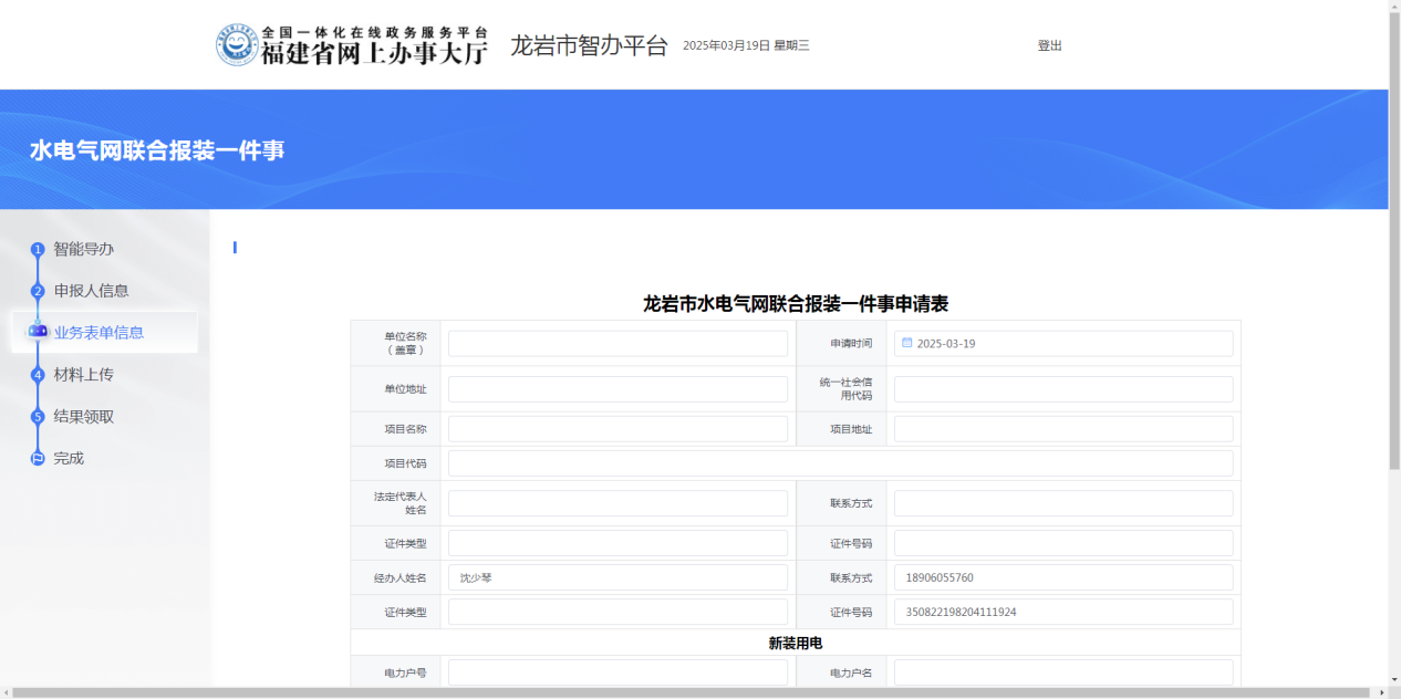 7.核對申請者信息、填寫業務表單并上傳對應申請材料。