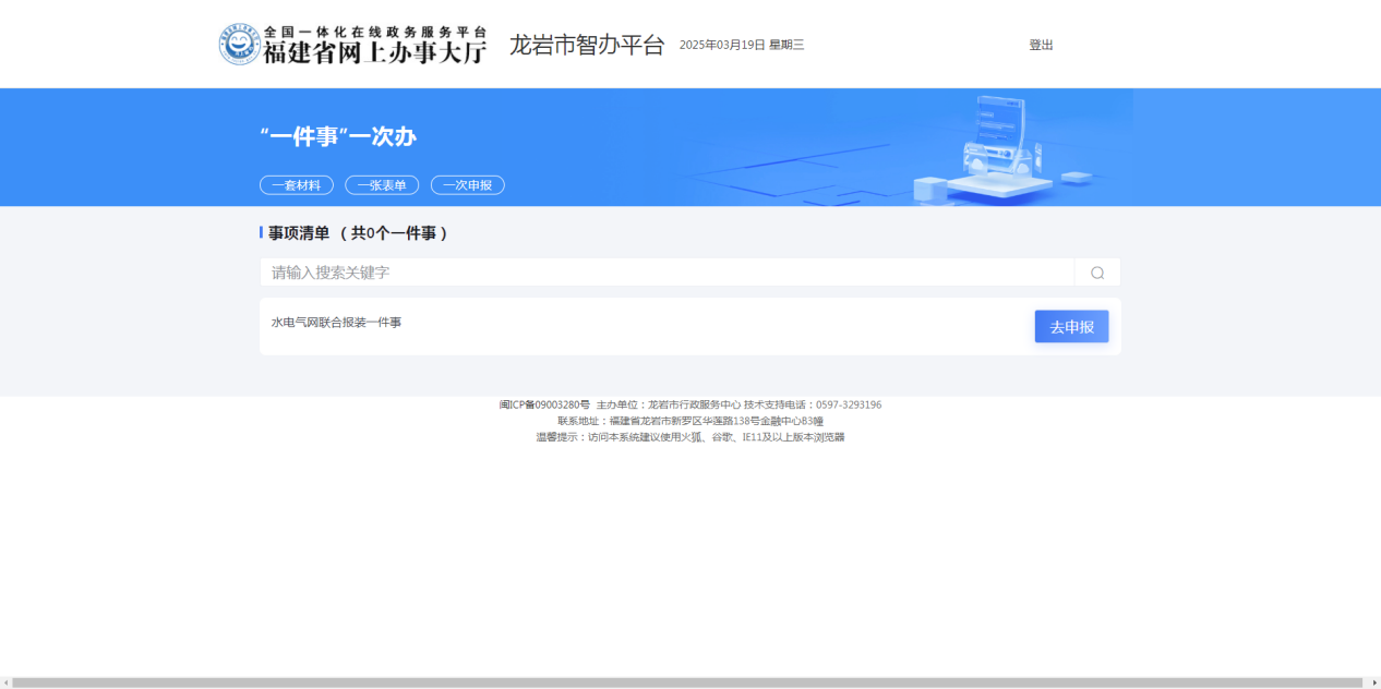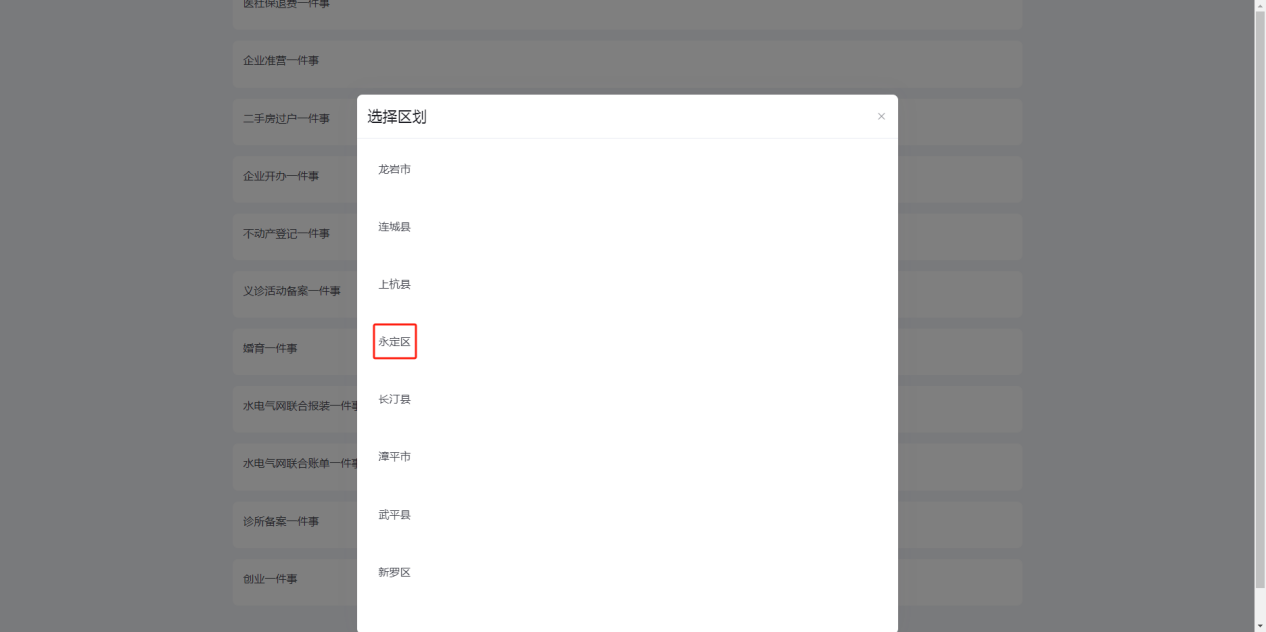 5.打開一件事專區選擇水電氣網聯合報裝一件事并選擇永定區。