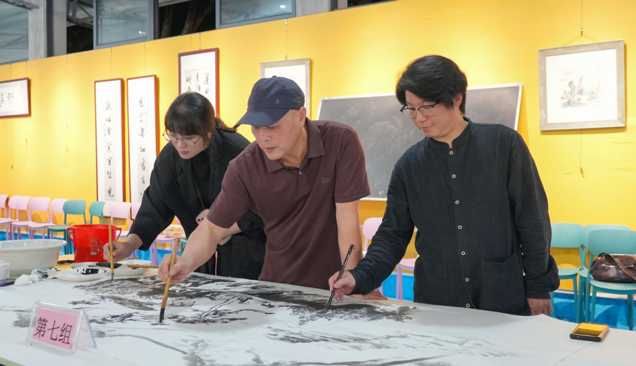 運筆、勾勒、上墨······美術(shù)名家們都全神貫注、聚精會神地做好每一幅畫作,并通過分組合作的方式作了《東樓西湖勝境》《傾懷攬勝》等30余幅作品,將永定本土的客家土樓、山水花鳥、田園風(fēng)光等元素囊括其中、相映成趣,線條蒼勁有力、畫卷栩栩如生,引得眾多繪畫愛好者拍手稱贊、拍照留念。 “本次系列活動,我們將通過捕捉永定客家文化、生態(tài)文化、紅色文化的厚重與靈動,以獨特的筆觸,將土樓之美、客家之韻流傳出去,讓客家永定的獨特韻味躍然紙上。將永定土樓、客家文化通過美術(shù)藝術(shù)創(chuàng)作生動展現(xiàn)出來。”福建省畫院院委、培訓(xùn)交流部主任張秋桔表示。