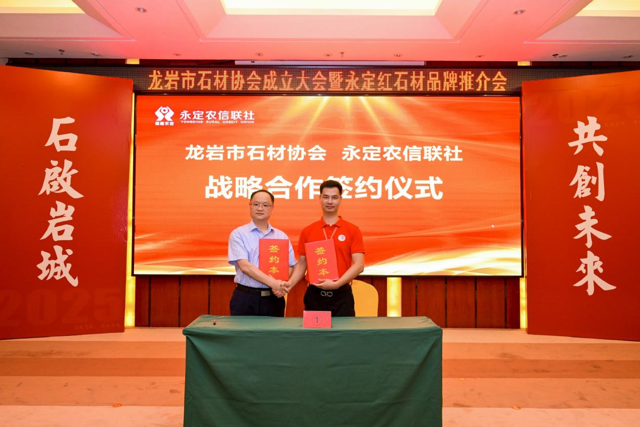 視頻加載中... 6月20日,在龍巖市石材協(xié)會成立大會暨永定紅品牌推介會上,永定農(nóng)信聯(lián)社與龍巖市石材協(xié)會簽訂戰(zhàn)略合作協(xié)議,向龍巖市石材協(xié)會現(xiàn)場授信5億元,向龍巖市磊鑫石業(yè)有限公司、龍巖市碧城石業(yè)有限公司分別授信1000萬元,標志著永定農(nóng)信聯(lián)社在“四鏈”融合、產(chǎn)融對接工作又邁出堅實一步。