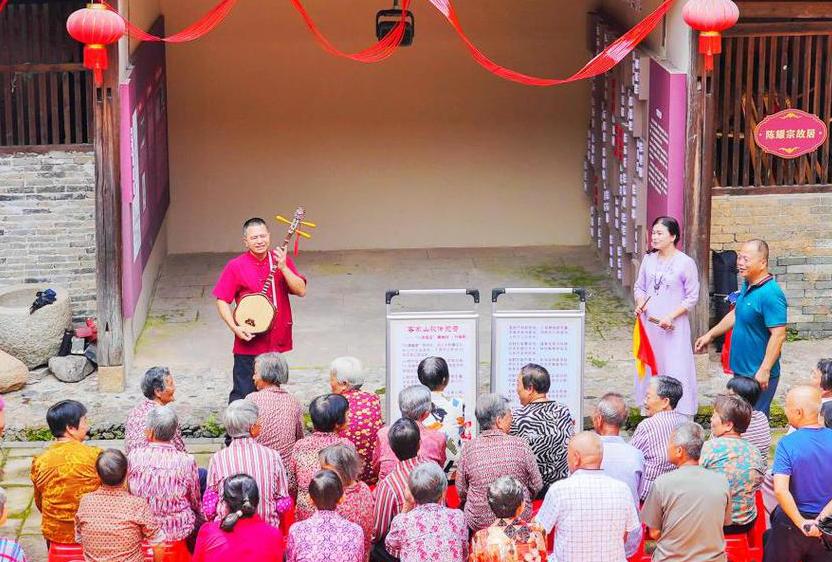 視頻加載中... “感謝英明共產黨,老人月月有錢分。”6月20日,在岐嶺鎮陳康容故居“望森樓”內,82歲的下山村村民陳福香清唱一曲動人的山歌,引得臺下群眾連連稱贊。