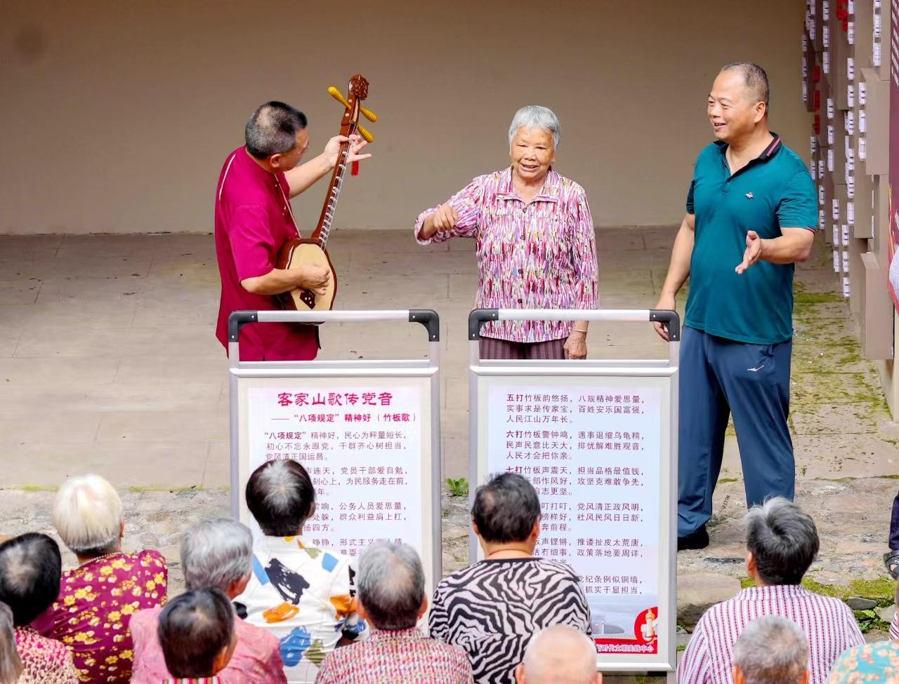 當日,由永定區委宣傳部主辦的“山歌唱響中央八項規定精神走進鄉村文化會客廳”活動在岐嶺鎮下山村文化會客廳舉行,旨在深入宣傳中央八項規定精神,讓黨風廉政建設理念以更接地氣的方式走進鄉村、深入人心。 “八打竹板叮打叮,黨風清正政風明,殘墻豐碑榜樣好,社風民風日日新。”……一首首朗朗上口的山歌,以群眾熟悉的旋律和樸實的歌詞,將中央八項規定精神娓娓道來,為當地群眾帶來了一場兼具文化韻味與教育意義的精神盛宴。