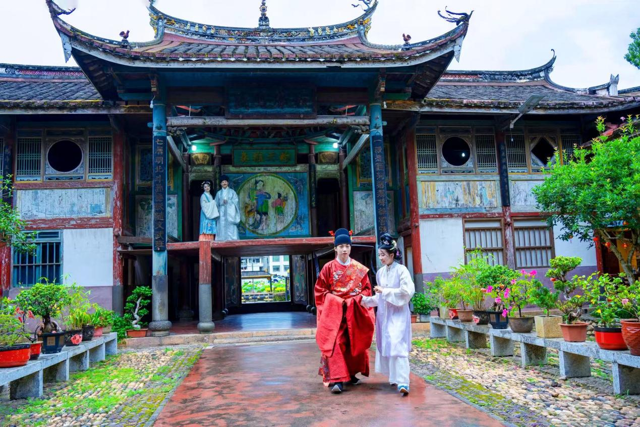 游客王女士感慨:“在百年西陂天后宮前賞蓮舞,仿佛穿越了時空。這里的每個角落都是天然取景框,我拍了三百多張照片。”