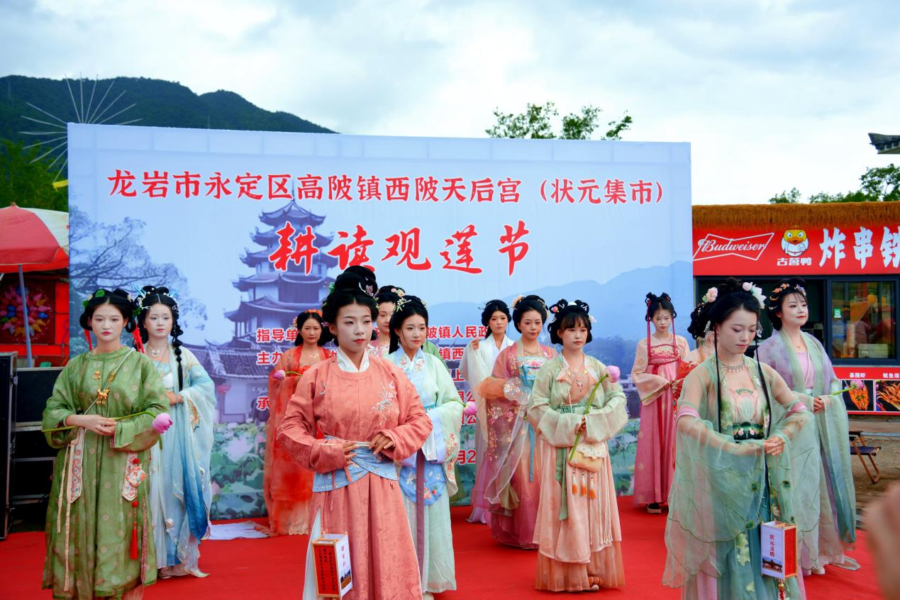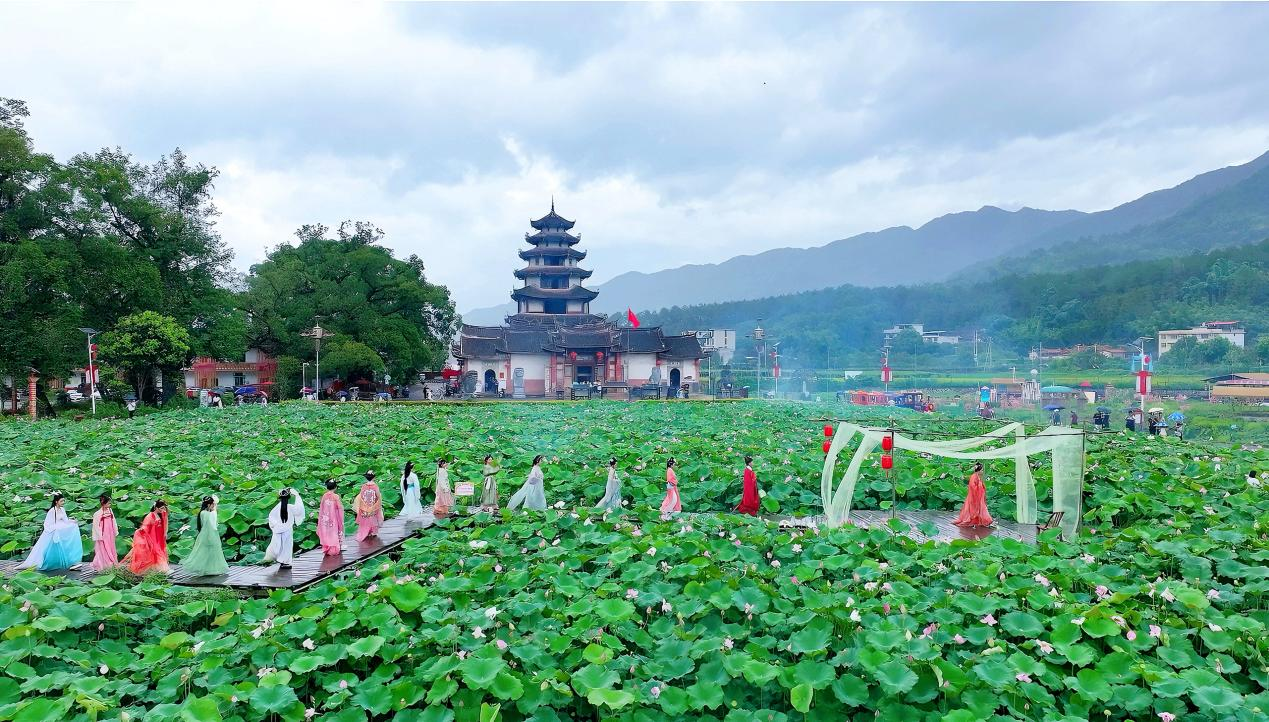 活動創(chuàng)新采用“打卡集章”模式,游客通過參與科舉知識問答、農(nóng)事體驗等環(huán)節(jié),可兌換“蓮田認養(yǎng)權(quán)”。據(jù)統(tǒng)計,當日帶動農(nóng)產(chǎn)品銷售3萬余元,3家旅行社現(xiàn)場簽約“耕讀文化”研學線路。當非遺漢舞遇見碧波紅蓮,當科舉文化碰撞農(nóng)旅體驗,西陂天后宮的這場夏日之約,不僅讓沉睡的耕讀傳統(tǒng)煥發(fā)新生,更探索出“文化興鎮(zhèn)、產(chǎn)業(yè)富民”的鄉(xiāng)村振興新路徑。正如荷塘中并蒂綻放的雙花,文化傳承與經(jīng)濟發(fā)展在此交相輝映,繪就一幅新時代的水鄉(xiāng)振興圖景。