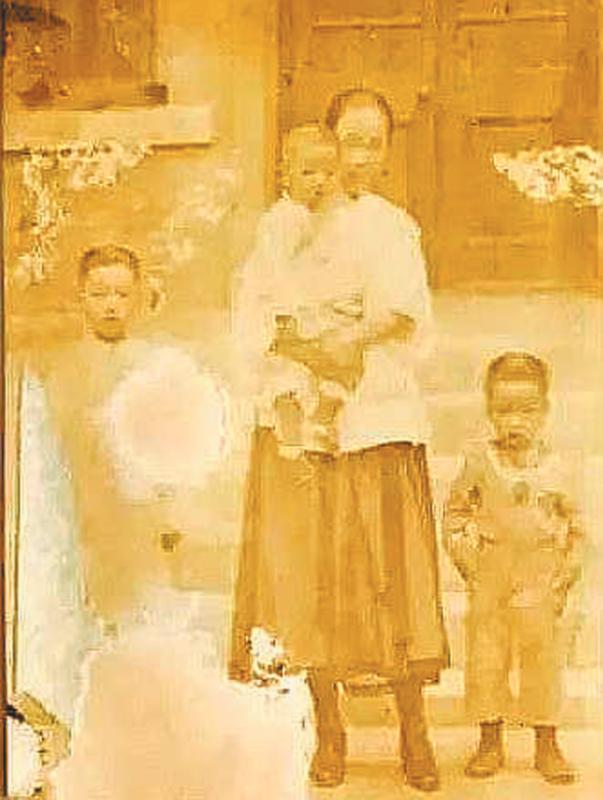 張若翼母親張丁振宗與其3個兒子:左邊是大兒子張若安、右邊是二兒子,懷抱的是三兒子張若舉。此照片1922年拍攝于北京的家。(資料照片)