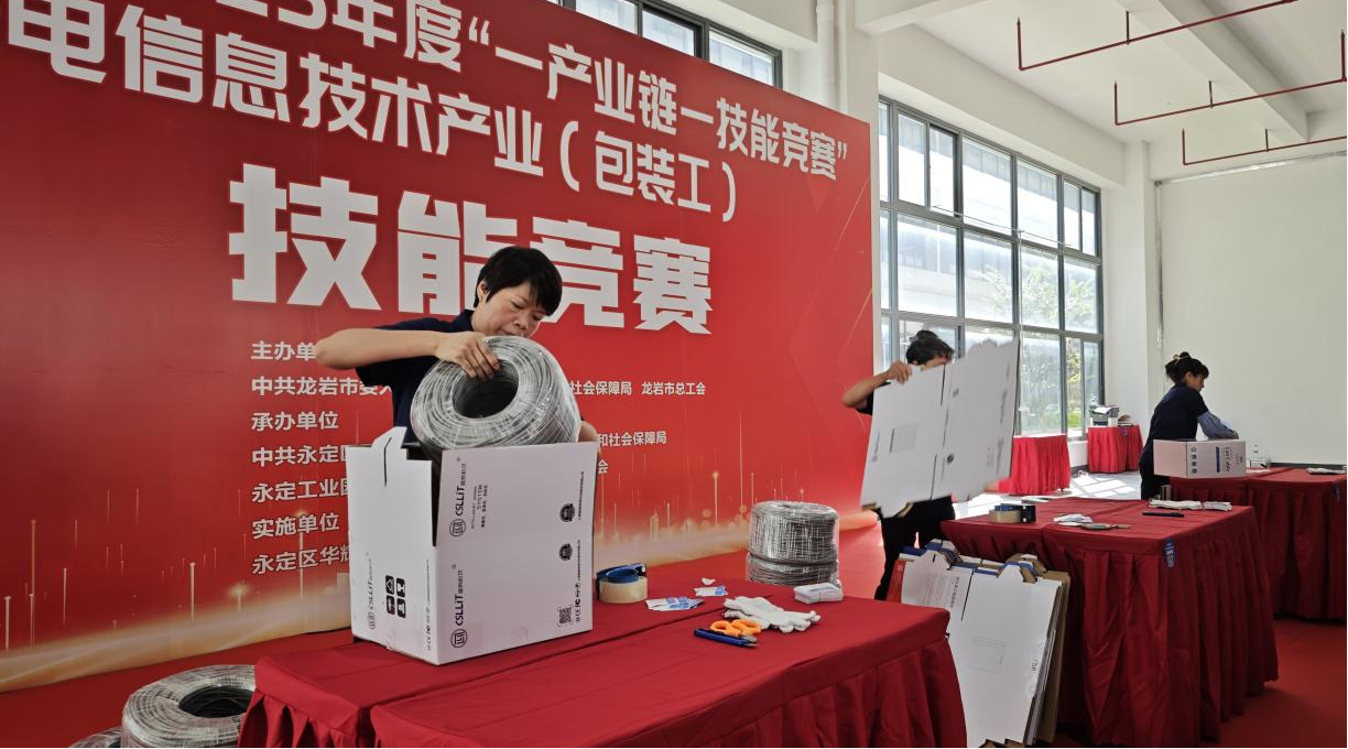 7月26日,由中共龍巖市委人才辦、龍巖市人社局、龍巖市總工會主辦,中共永定區委組織部(人才辦)、永定區人社局、永定工業園區管委會、永定區總工會承辦的龍巖市2025年光電信息技術產業(包裝工)技能競賽在永定工業園區開幕。立孚光電、宇宏科技、互寬集團、康海通信、閩藍恒業、訊通科技等6支代表隊30名行業能手“登臺競技”。