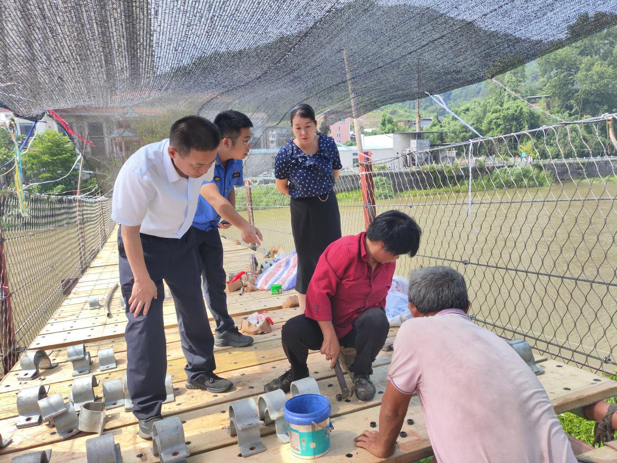 8月1日,經過施工人員35天的橋面修復、加固等施工,永定城郊書嶺人行景觀吊索橋恢復通行。