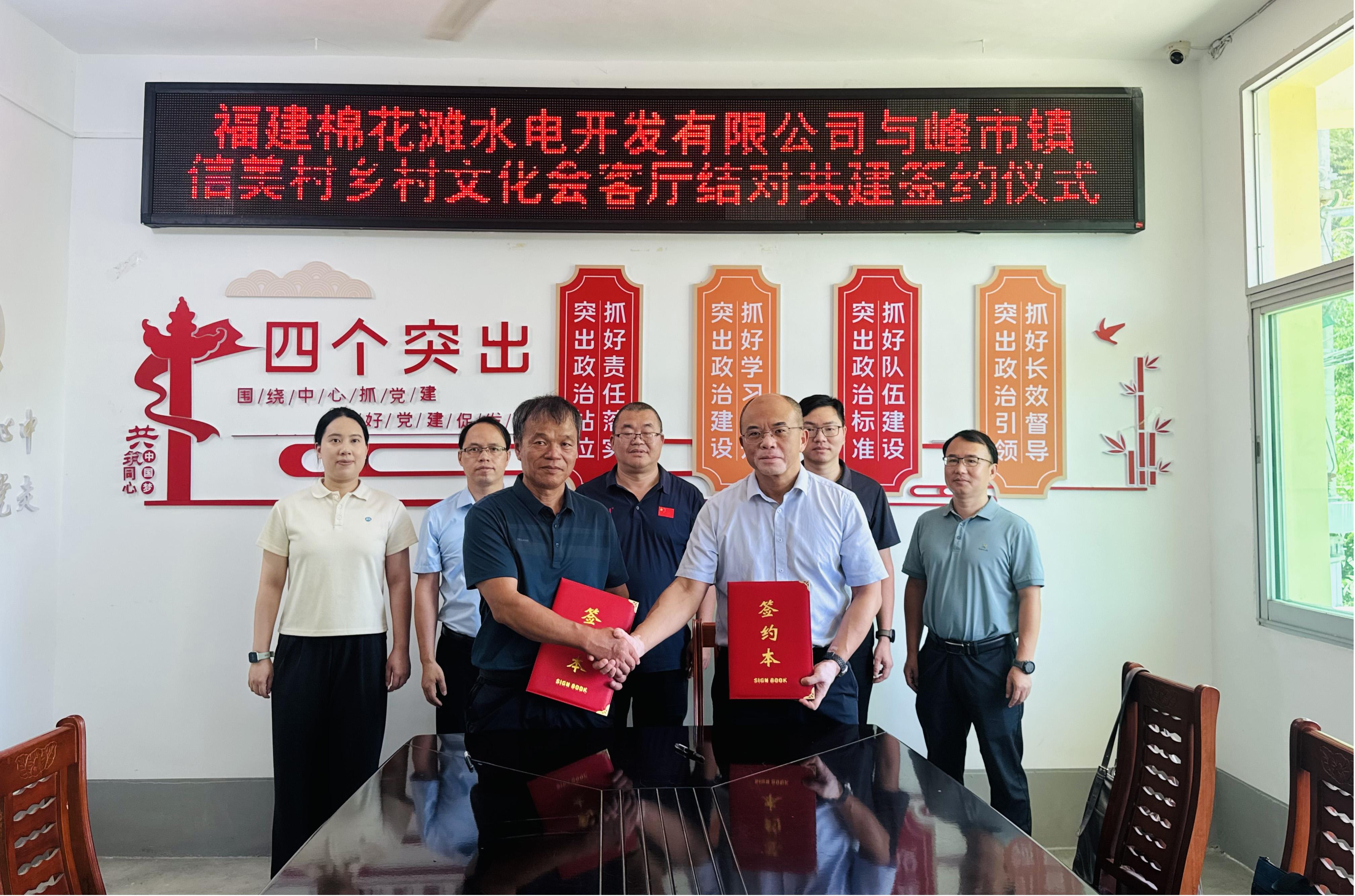 福建棉花灘水電開發有限公司與峰市鎮信美村鄉村文化會客廳簽訂結對共建協議