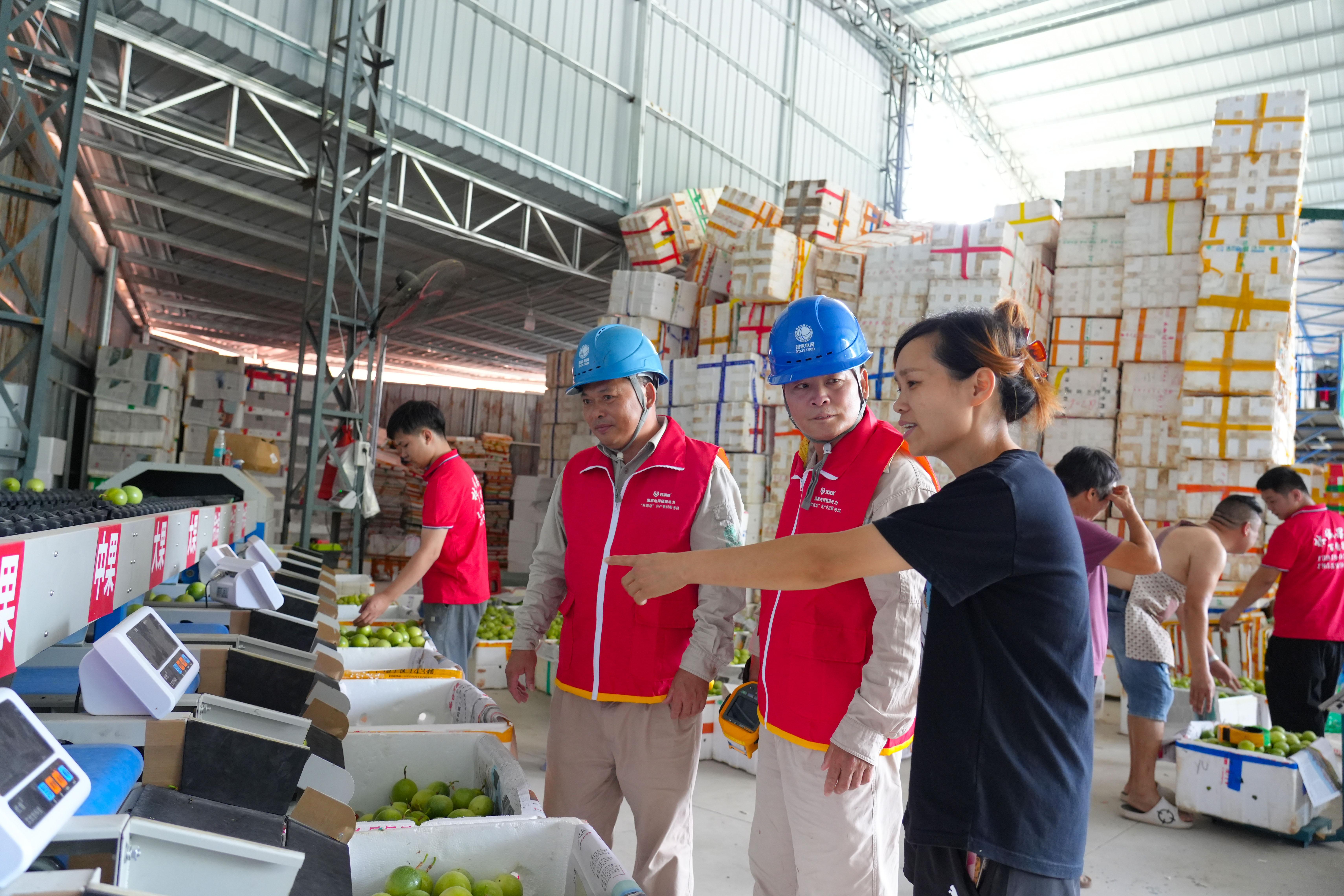 除了分揀環節,百香果儲存保鮮和深加工同樣離不開電力支撐。在大坪洋農業有限公司,負責人蘇秋鳳正忙著指揮工人擺放準備在抖音直播間售賣的果品。看到服務隊上門,她一邊引導服務隊參觀還在擴建的車間,一邊高興地說起近中期的規劃:“凍庫可以延長百香果的儲存時間,方便錯峰銷售,接下去我們馬上會投運3個凍庫,另外還會引進全自動榨汁生產線,準備做百香果深加工產業。電力穩定,我們對擴大經營規模就更有信心了。” 近年來,古竹鄉立足當地富硒土壤與亞熱帶季風氣候的天然優勢,大力發展百香果產業,目前全鄉百香果種植面積達3000多畝,有相關企業、專業合作社10多家。國網永定區供電公司主動融入發展,精細跟進百香果種植基地、分揀加工車間、凍庫等相關用電需求,持續加大農網改造升級力度,不斷提升供電服務品質,為百香果產業發展提供了充足的電力保障。