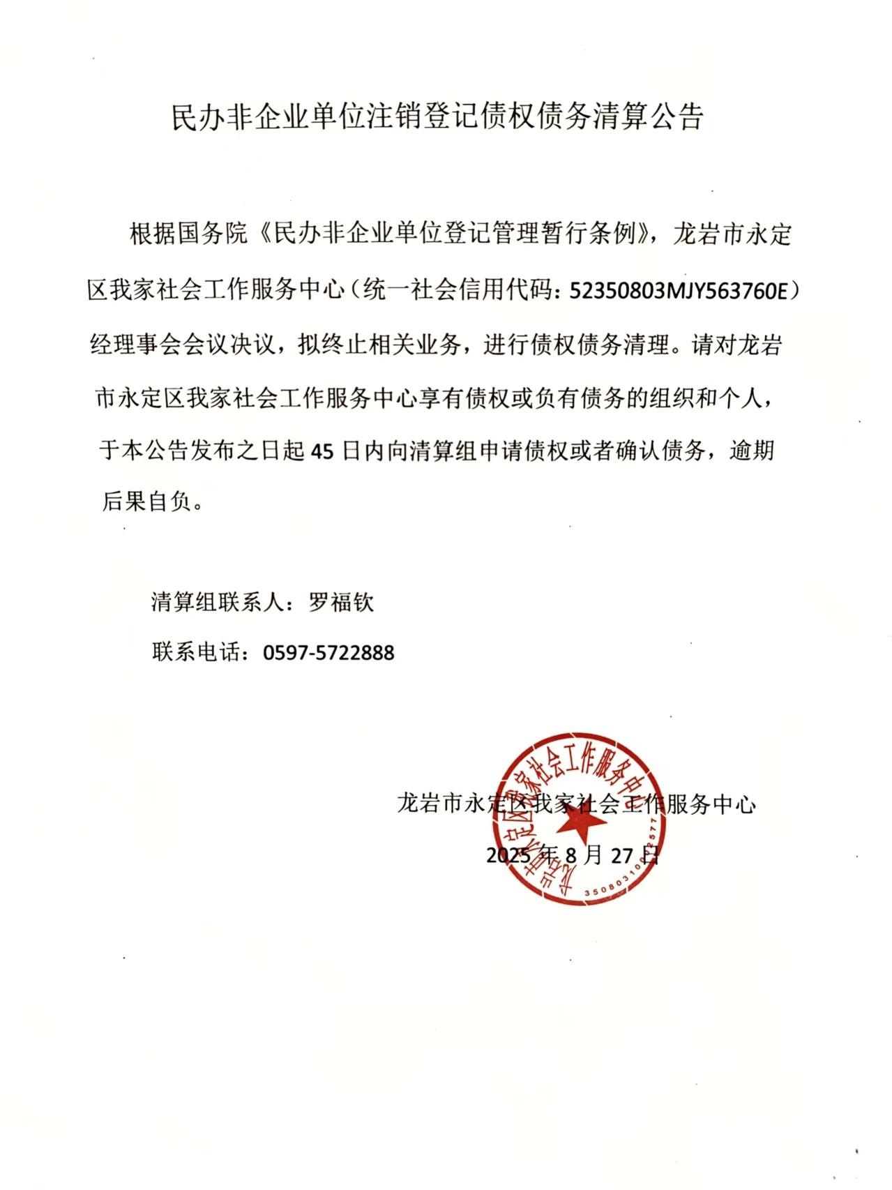 民辦非企業(yè)單位注銷登記債權(quán)債務(wù)清算公告