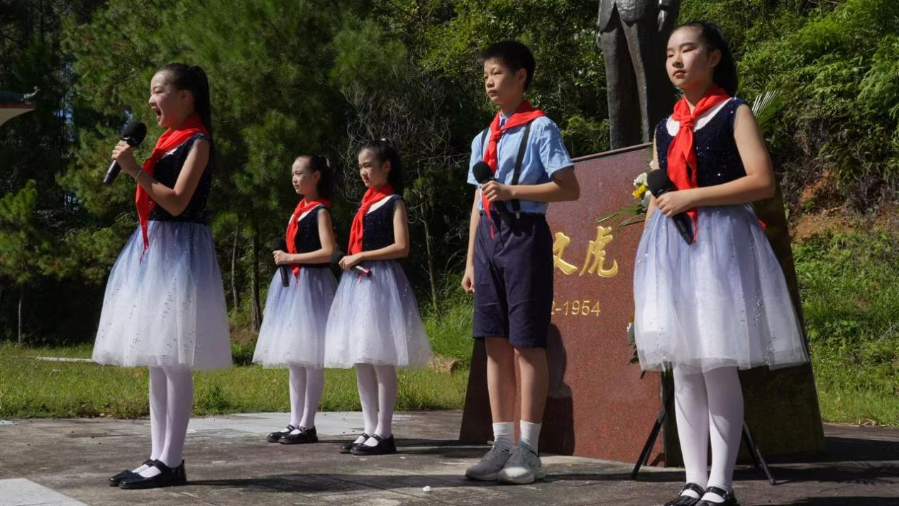 永定胡文虎實驗小學的同學們帶來的《祖國頌》,表達青少年對祖國深深的熱愛和建設祖國的決心;永定土樓合唱團帶來的《在太行山上》,把現場的觀眾帶回到了那段山河激蕩、眾志成城的抗戰歲月;配樂詩朗誦《虎豹丹心·僑魂永駐》,讓觀眾感受到了包括海外僑胞在內的中華兒女同仇敵愾、頑強不屈的精神。《黃水謠》《春天的杜鵑》……來自永定各行各業的演員們用歌聲表達了對先烈的緬懷和對和平的珍視。