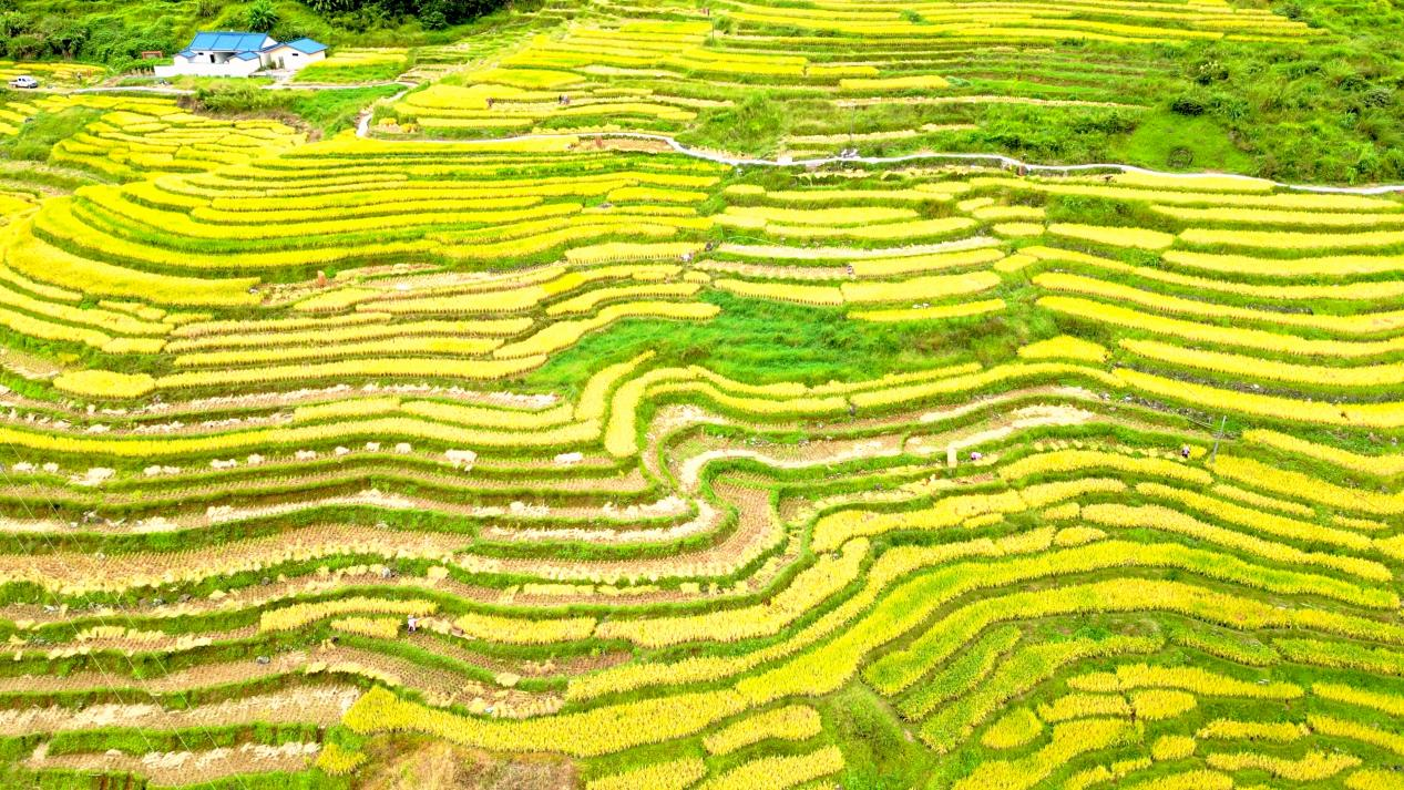 金秋九月,稻谷飄香。永定各地的高山梯田水稻陸續進入豐收季,金色稻浪與古樸村莊、青翠山林交相輝映,構成一幅天然的秋日畫卷。自九月起,當地村民陸續開鐮收割,這場豐收盛宴預計將持續至十月中旬。