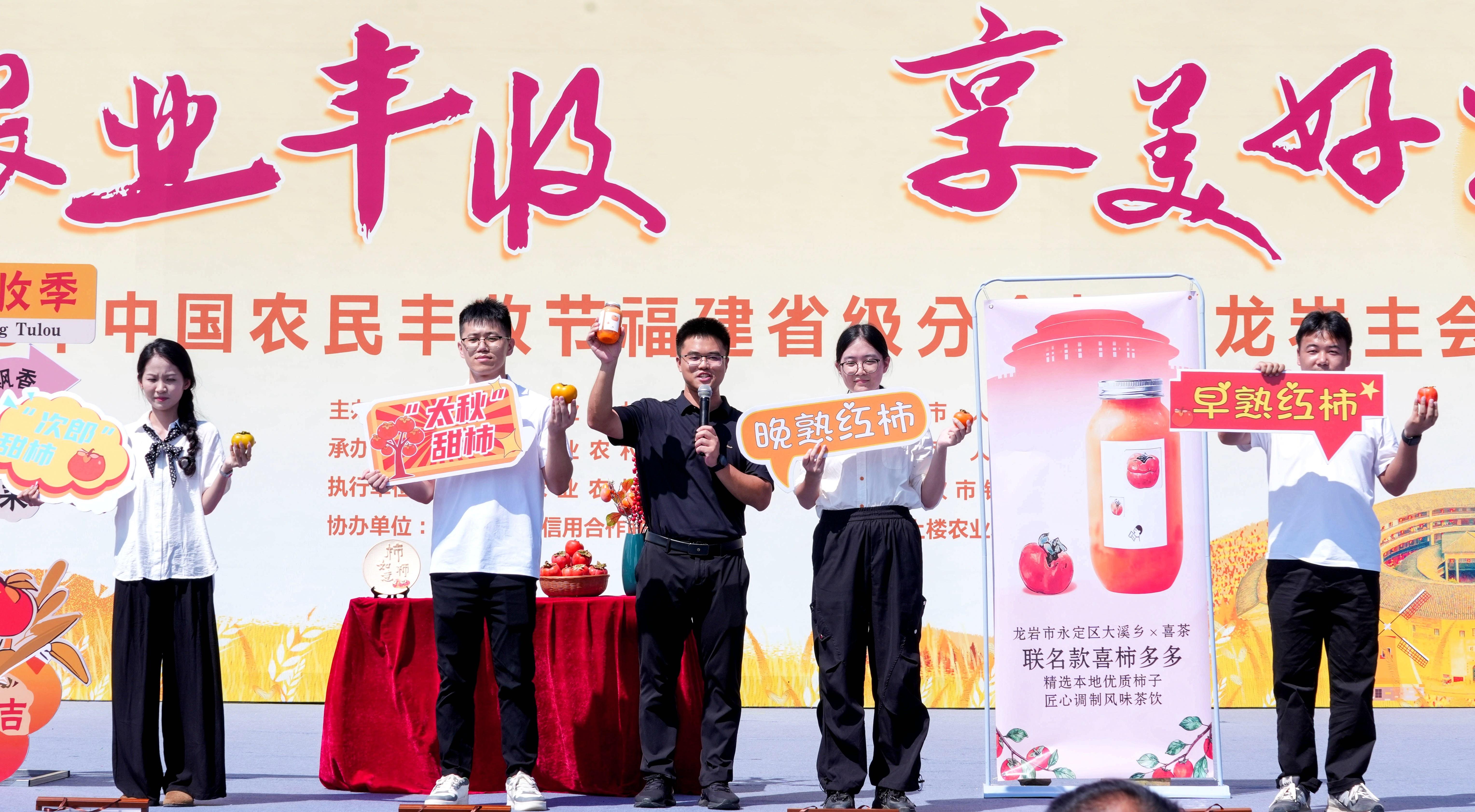 上午十點(diǎn),激昂的鼓點(diǎn)劃破田野上空,開場表演《坎市舞龍燈》率先登場。五彩龍身隨鼓點(diǎn)靈動穿梭、騰躍盤旋,瞬間點(diǎn)燃現(xiàn)場熱烈氛圍;緊接著,情景舞蹈《斗笠舞》溫情上演,舞者身著特色服飾,以輕盈舞姿復(fù)刻耕耘、播種、收獲的農(nóng)耕場景,喚起在場觀眾的鄉(xiāng)土記憶 。此次活動以“慶農(nóng)業(yè)豐收 享美好生活”為核心主題,構(gòu)建起“展示+體驗(yàn)+消費(fèi)”三位一體的節(jié)慶平臺。現(xiàn)場設(shè)置的農(nóng)特產(chǎn)品展銷區(qū)、文創(chuàng)(非遺)展銷區(qū)、農(nóng)機(jī)展示區(qū)等板塊,全方位展現(xiàn)永定鄉(xiāng)村振興的新風(fēng)貌與農(nóng)業(yè)發(fā)展的新成果。在永定五大農(nóng)特產(chǎn)品專屬推介環(huán)節(jié),“永定牛、土樓柿、龍湖魚、蝴蝶花、有機(jī)菜”集體亮相,工作人員通過實(shí)物陳列與生動講解,讓每款產(chǎn)品的生態(tài)優(yōu)勢與品質(zhì)魅力深入人心。