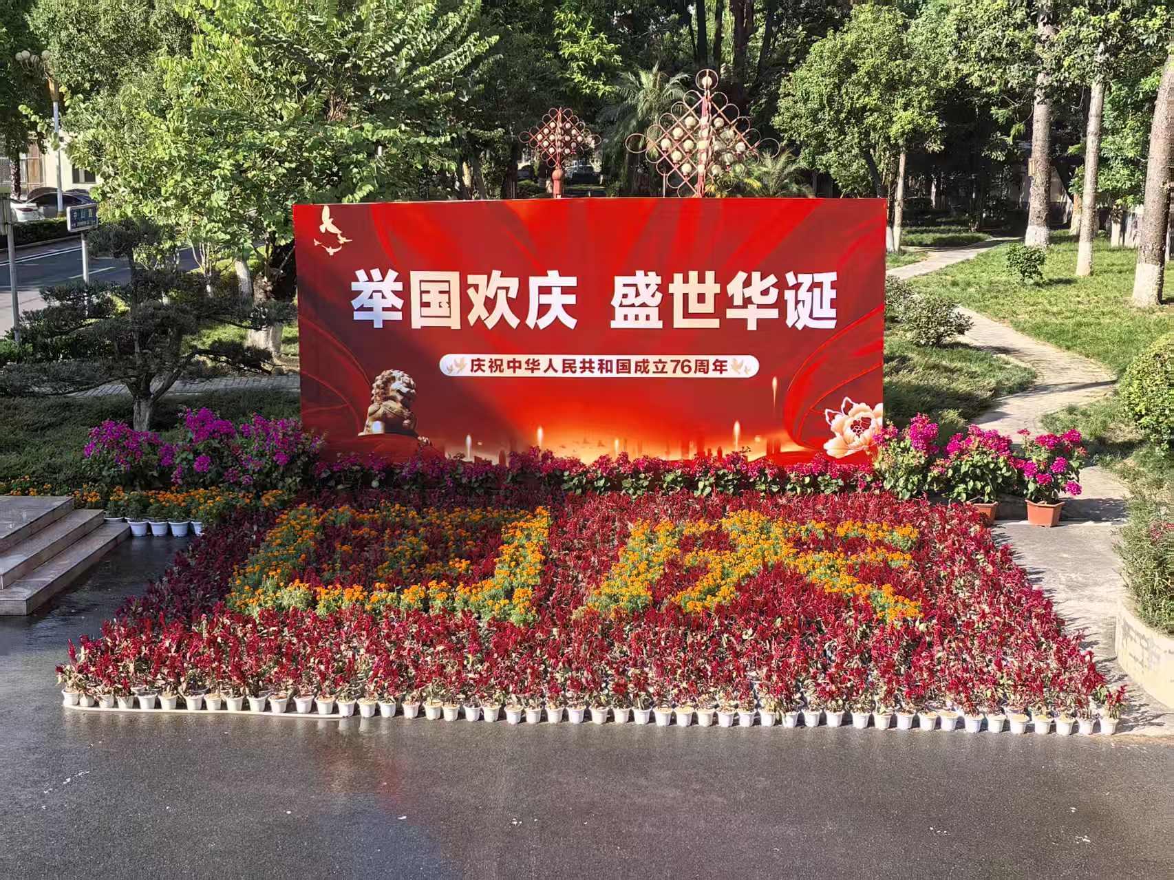 “使用花期較長且色彩艷麗的橙色孔雀草、黃色孔雀草、雞冠花鳳尾、雞冠花赤壁、長春花、三角梅等共2萬余株花卉裝扮城市,讓城區洋溢著濃濃的國慶氛圍?!庇蓝▍^園林服務所副所長江伍雅表示。