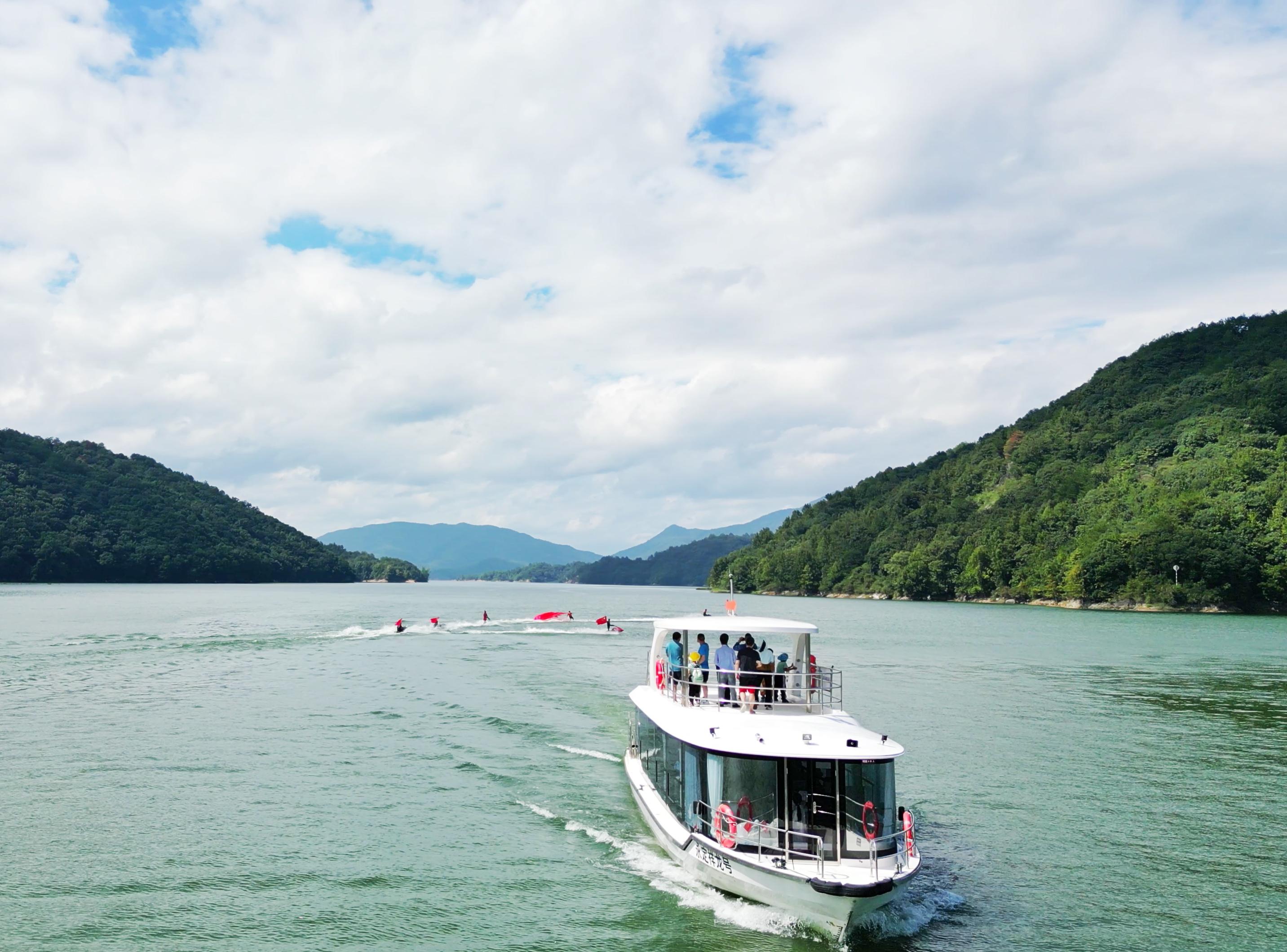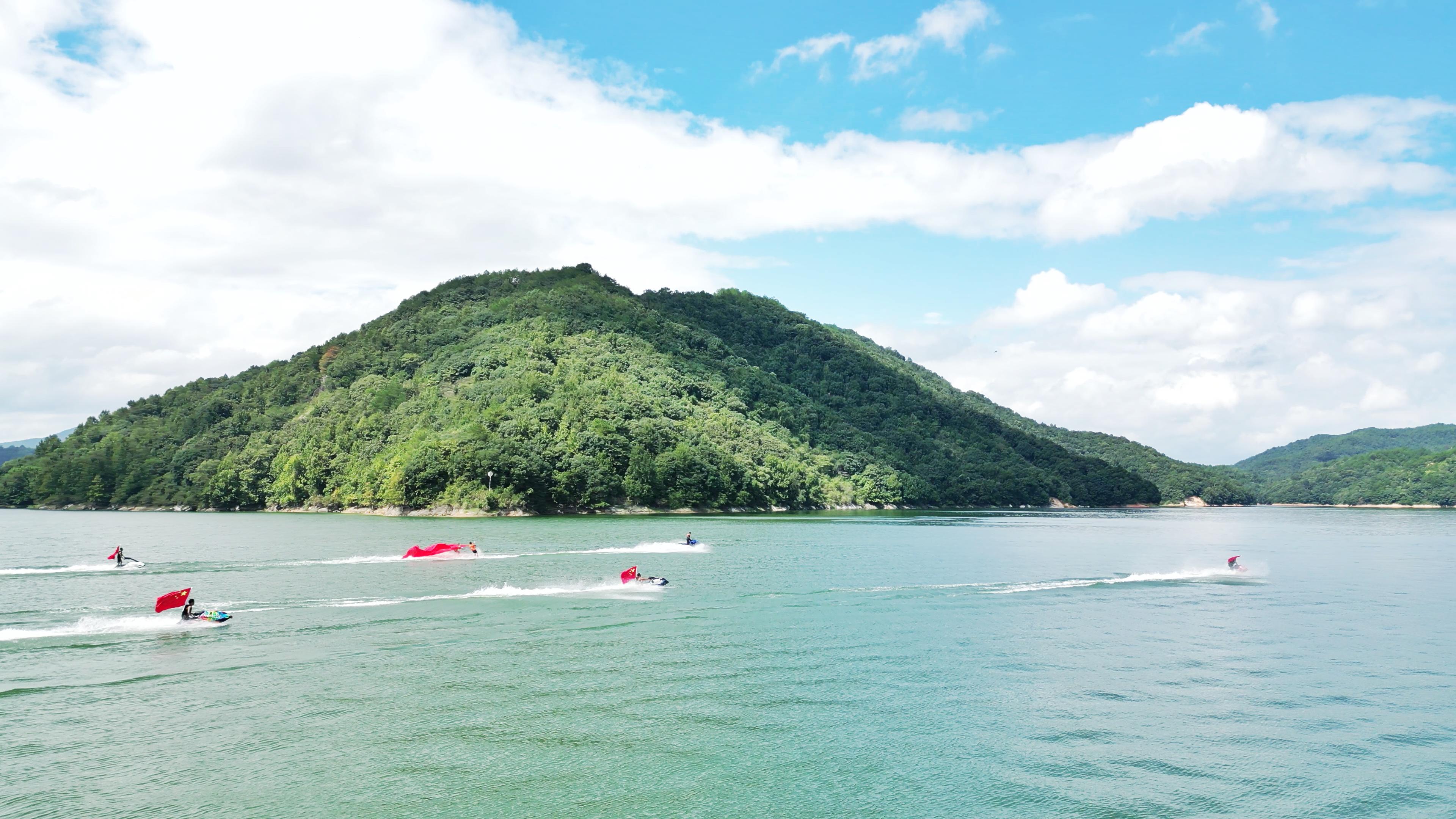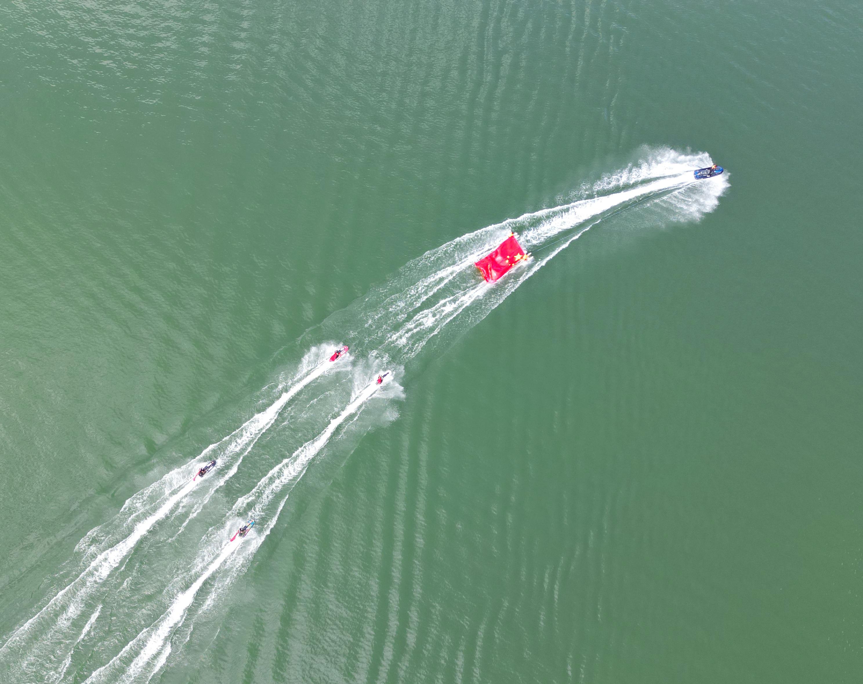 10月5日,在永定龍湖景區,由摩托艇牽引的巨幅國旗在湖面疾馳而過,激起的浪花與飄揚的旗幟形成強烈的視覺沖擊,讓來自全國各地的游客在領略自然風光的同時,真切感受到“山河無恙”的自豪感。 “看著我們的國旗在綠水青山中飛舞,感覺特別震撼、特別燃,每一縷風拂過旗角都在訴說山河無恙、國泰民安。”游客蘇冬華表示。