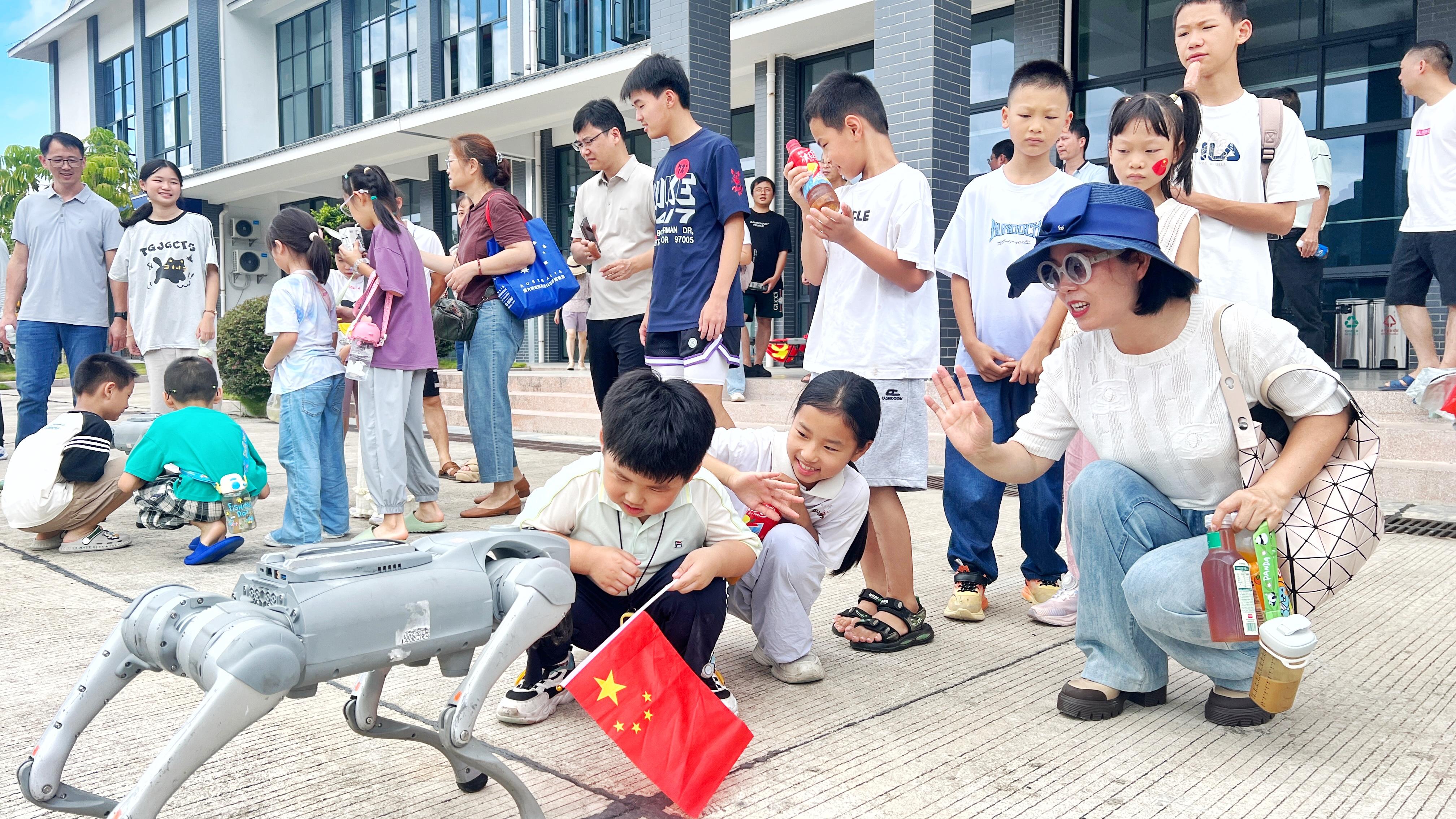 據介紹,此次雙節活動,永定龍湖景區以“國旗飛舞頌祖國”為主題,創新性采用水上動力裝置與國旗結合的展示方式,沿龍湖碼頭核心游覽區展開,與無人機表演形成“天地呼應”的立體視覺體系。 同時,科技互動元素也成為景區的新亮點,2臺人形智能機器人與4只機器狗每日上演6場精彩表演:動感舞蹈、國慶主題造型隊列、龍湖小龍人服裝巡游及語音互動環節吸引大量游客駐足。
