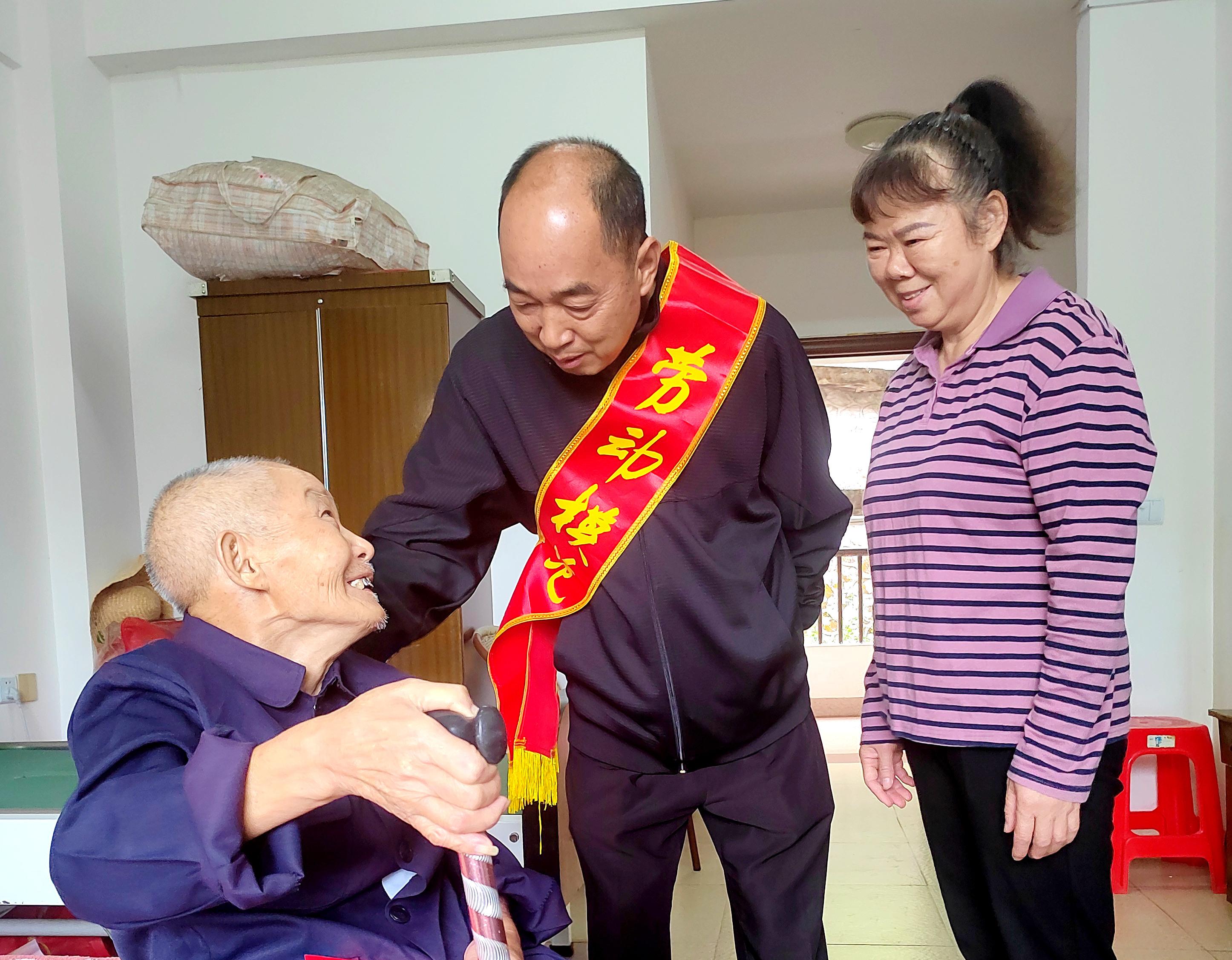 在一年一度的重陽佳節即將到來之際,10月21日上午,龍巖市勞動模范、龍巖市最美退役軍人盧貴鋒攜同妻子帶著精心準備的慰問金和禮物,自費前往永定區光榮院為院民送上飽含深情的祝福,弘揚中華民族的尊老、敬老、愛老的傳統美德,讓老人們感受到來自社會大家庭的溫暖。永定區勞動模范協會、區退役軍人事務局機關工會負責同志和區總工會職工志愿者參加活動。