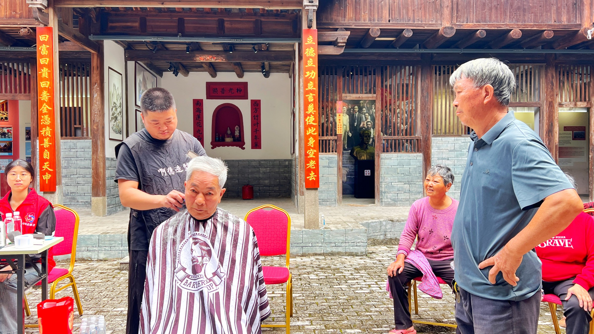 10月29日,重陽節當天,永定區大溪鄉坑頭村鄉村文化會客廳——積善樓內暖意融融,由當地鄉、村干部組織的志愿服務隊早早支起理發攤,為留守老人義務理發,剃刀過處,銀發齊整;廚房飄出養生飯的香氣,志愿者端著熱騰騰的養生菜,挨桌送到老人手中。這一幕,正是坑頭村以鄉村文化會客廳為載體,深耕孝善文化、激活基層治理的生動縮影。