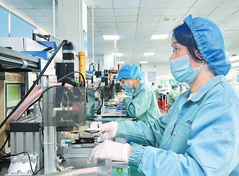 近日,位于永定工業園區的龍巖市兆明至晟電子科技有限公司生產車間內一派繁忙,工人正在趕制東南亞市場訂單。據悉,年底東南亞市場訂單暴漲,增長30%。目前,企業正在擴大產能,預計今年產值可達8000萬元。