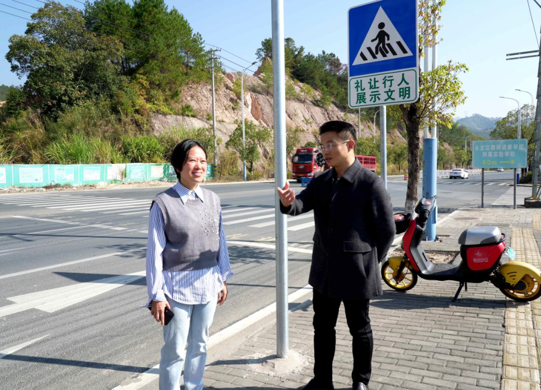 12月8日,鄧金雄的身影出現(xiàn)在永定區(qū)北環(huán)路——這里沿線分布著三所學(xué)校,此前他在調(diào)研中發(fā)現(xiàn),該路段車流密集,學(xué)生上下學(xué)高峰期交通安全隱患突出。為此,他迅速撰寫并提交《關(guān)于在永定區(qū)北環(huán)路三所學(xué)校區(qū)間安裝區(qū)間測速設(shè)備的建議》。