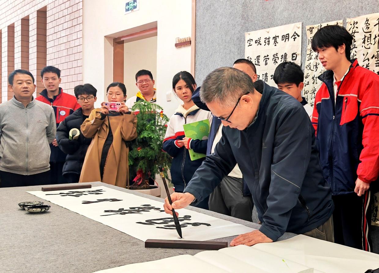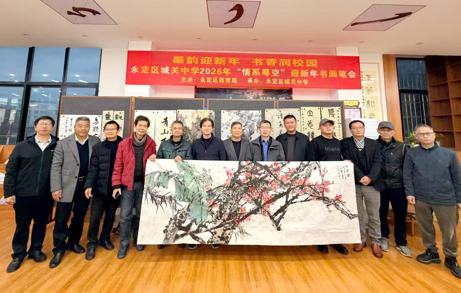 視頻加載中... 12月25日,“‘墨韻迎新年,書香潤校園’2026年‘情系粵空’迎新年書畫筆會”在龍巖市永定區城關中學舉辦。筆會由區教育局主辦,特邀區內外知名書畫家走進城關中學學子崠公園采風,與師生代表共聚一堂,揮毫潑墨,以一場高水平的藝術雅集迎接2026年新年的到來。
