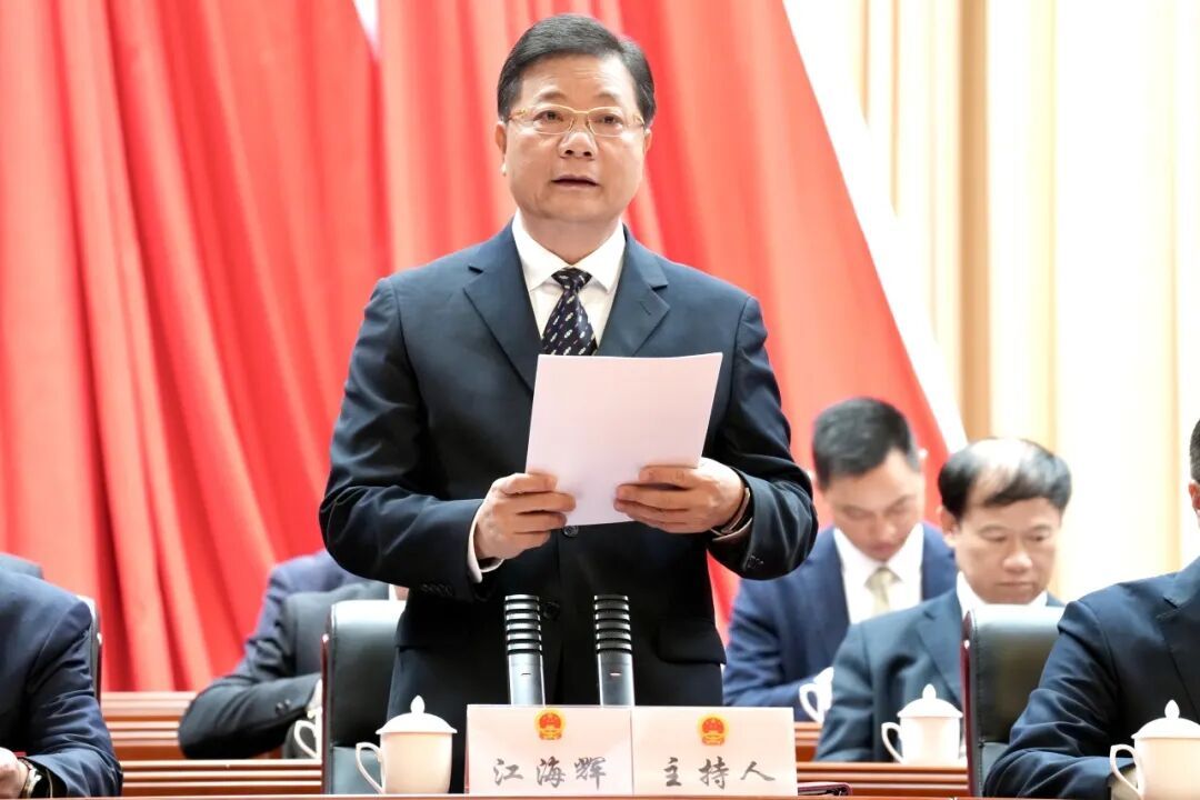 大會由執行主席江海輝主持 大會執行主席李強、李宏泰、鄭煌泰、張磊、王劍斌、蘇賢添、江海輝、林如居、張樹焜、賴秀金、熊明在主席臺前排就座。主席團其他成員在主席臺就座,會議由大會執行主席江海輝主持。
