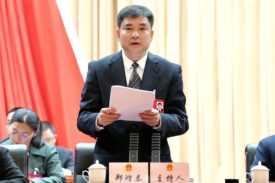 區人大常委會主任鄭煌泰致閉幕詞,他說,會議期間,各位代表肩負全區人民的重托,以高度的政治責任感和飽滿的履職熱情,議發展大事、履為民之責、獻務實之策,充分體現了心系永定的責任擔當和昂揚奮進的精神風貌。