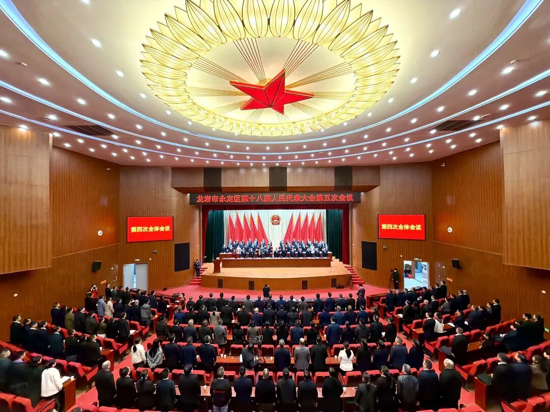 龍巖市永定區第十八屆人民代表大會第五次會議 永定新聞網訊(熊川 陳敏 陳景彬 張文炳 吳道明 林新騰 邱頌橋)12月26日下午,龍巖市永定區第十八屆人民代表大會第五次會議舉行第四次全體會議。在圓滿結束各項議程后,大會勝利閉幕。