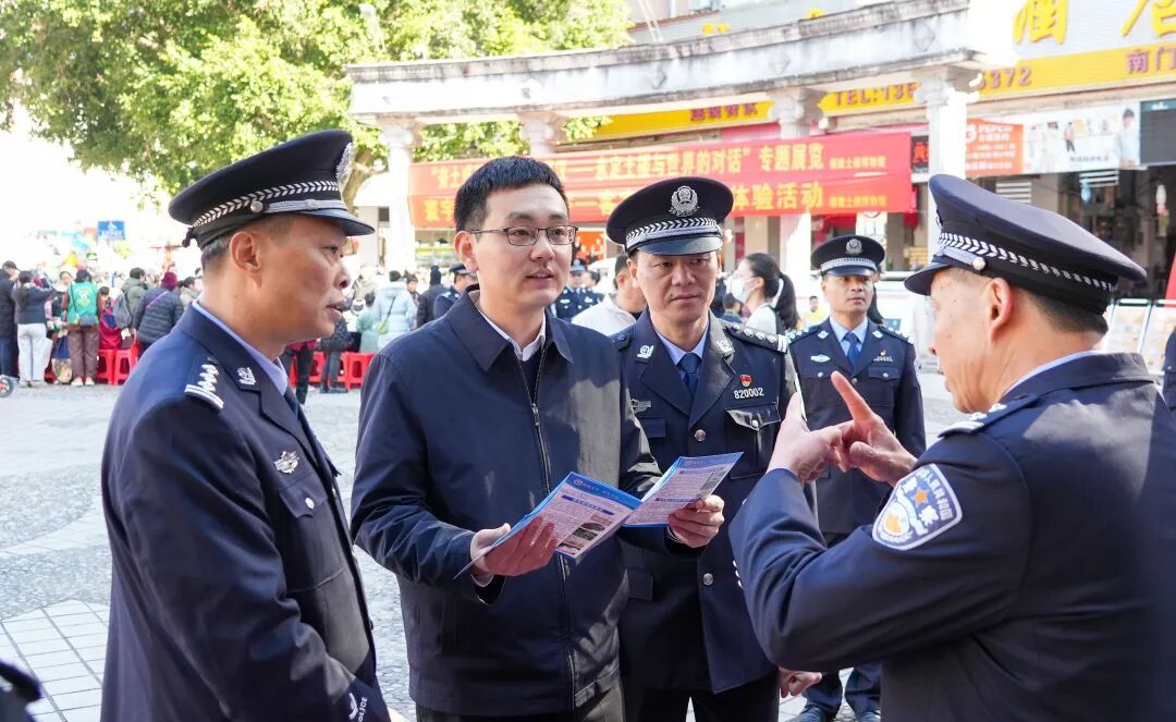 在南門商貿廣場舉辦的“四十載守護平安 110勇毅前行”主題宣傳活動現場,區領導一行與干警代表親切交流,實地察看并詳細了解警務槍支裝備、消防應急救援、高速公路執法、勤務運行、警犬實戰等情況,對他們長期以來為平安永定建設作出的積極貢獻給予充分肯定。