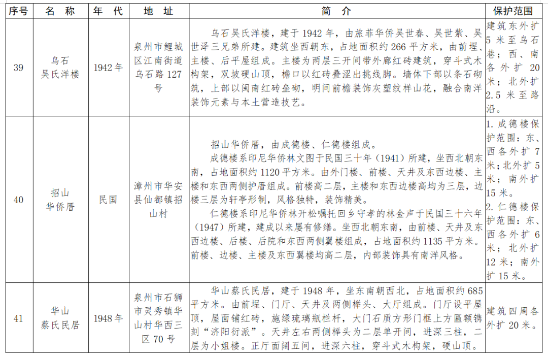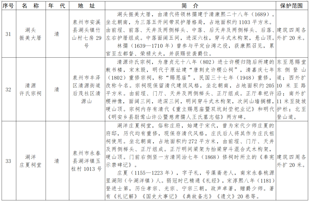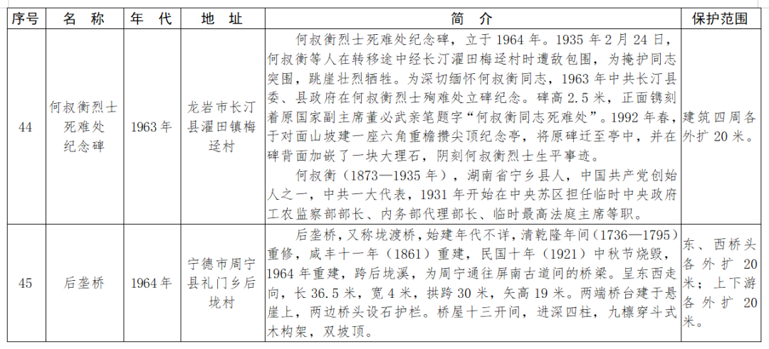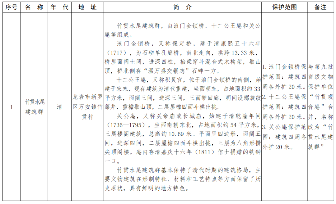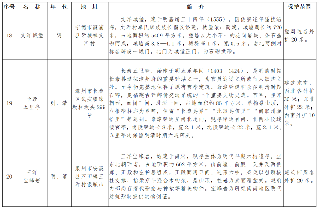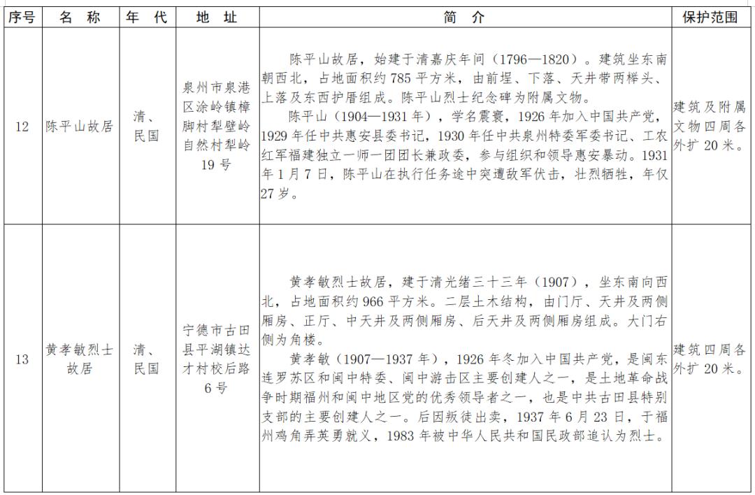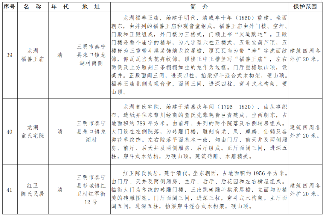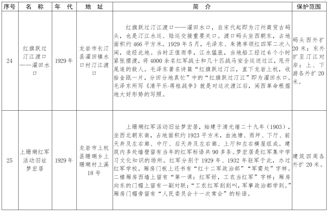 視頻加載中... 近日,福建省人民政府公布了第十一批省級(jí)文物保護(hù)單位名單及保護(hù)范圍,133處(含2處擴(kuò)展項(xiàng)目)榜上有名,其中包括永定區(qū)的5處文物。 據(jù)悉,此次公布的“省保”單位涵蓋古遺址6處、古墓葬8處、古建筑63處、古石刻及造像8處、近代重要史跡及代表性建筑45處、其它1處、擴(kuò)展項(xiàng)目2處。其中,永定區(qū)湖坑鎮(zhèn)奧杳村“慶福樓”被列入古建筑類;永定區(qū)湖坑鎮(zhèn)奧杳村“奧杳鄉(xiāng)蘇維埃政府舊址‘裕德樓’”、永定區(qū)虎崗鎮(zhèn)虎西村“毛澤東舊居‘晏田祠’”、永定區(qū)湖坑鎮(zhèn)奧杳村“奧杳戰(zhàn)地舊址‘裕興樓’”、永定區(qū)洪山鎮(zhèn)尚徑村“廖成美將軍祖居尚徑‘承蔭樓’”等4處被列入近代重要史跡及代表性建筑。 福建省第十一批省級(jí)文物保護(hù)單位名單及保護(hù)范圍 一、古遺址(6處)