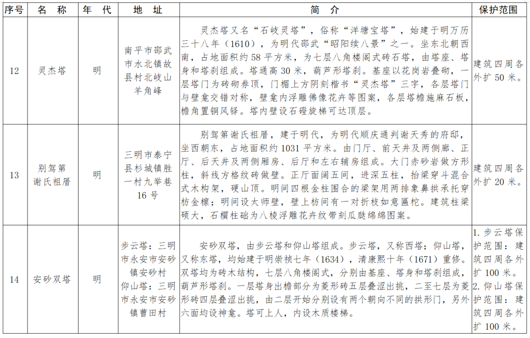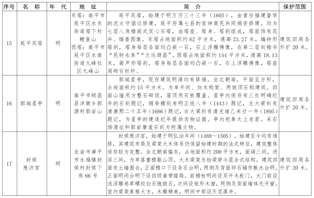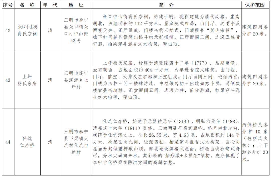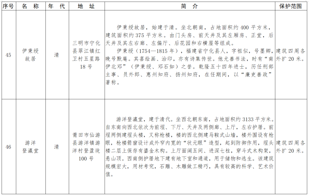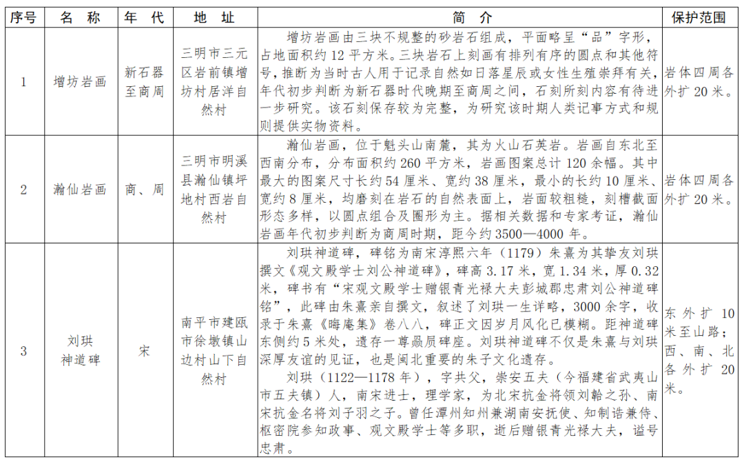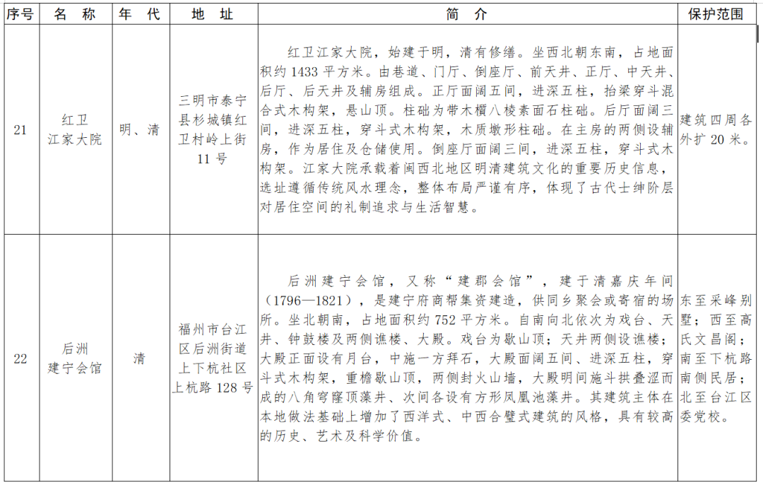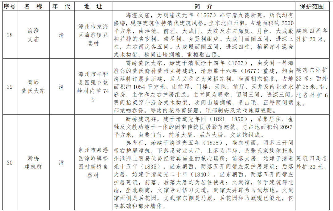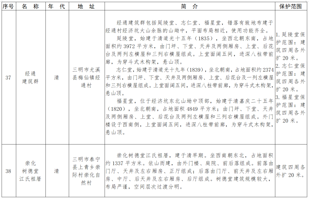 視頻加載中... 近日,福建省人民政府公布了第十一批省級(jí)文物保護(hù)單位名單及保護(hù)范圍,133處(含2處擴(kuò)展項(xiàng)目)榜上有名,其中包括永定區(qū)的5處文物。 據(jù)悉,此次公布的“省保”單位涵蓋古遺址6處、古墓葬8處、古建筑63處、古石刻及造像8處、近代重要史跡及代表性建筑45處、其它1處、擴(kuò)展項(xiàng)目2處。其中,永定區(qū)湖坑鎮(zhèn)奧杳村“慶福樓”被列入古建筑類;永定區(qū)湖坑鎮(zhèn)奧杳村“奧杳鄉(xiāng)蘇維埃政府舊址‘裕德樓’”、永定區(qū)虎崗鎮(zhèn)虎西村“毛澤東舊居‘晏田祠’”、永定區(qū)湖坑鎮(zhèn)奧杳村“奧杳戰(zhàn)地舊址‘裕興樓’”、永定區(qū)洪山鎮(zhèn)尚徑村“廖成美將軍祖居尚徑‘承蔭樓’”等4處被列入近代重要史跡及代表性建筑。 福建省第十一批省級(jí)文物保護(hù)單位名單及保護(hù)范圍 一、古遺址(6處)