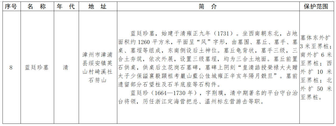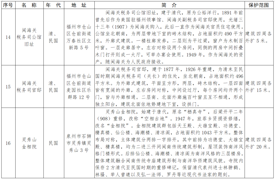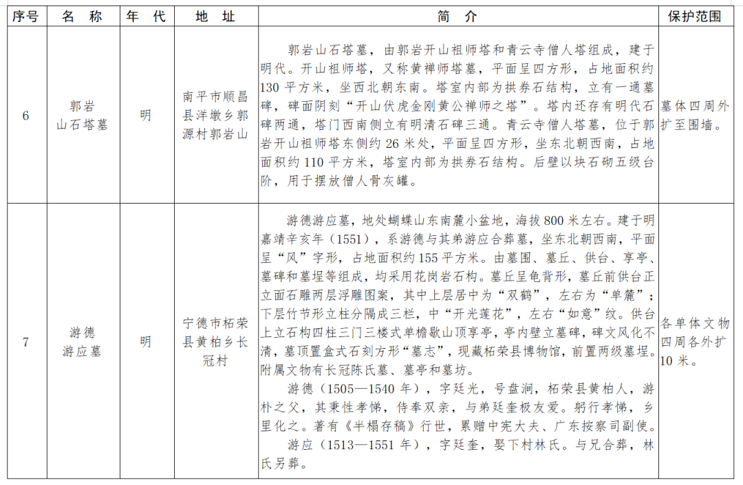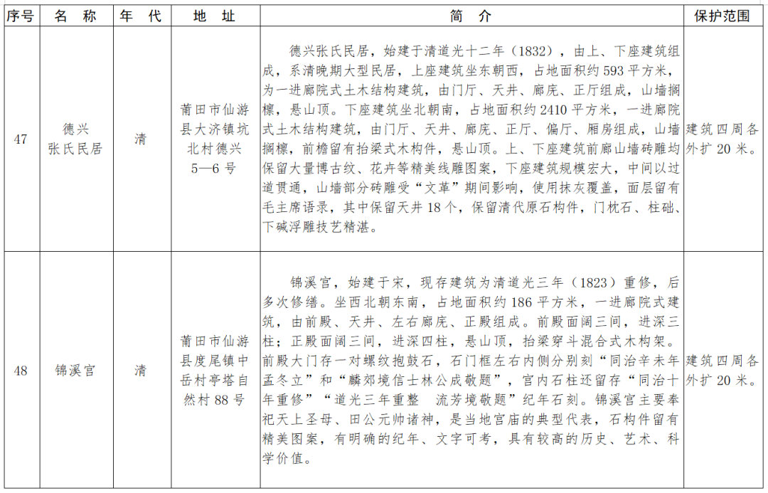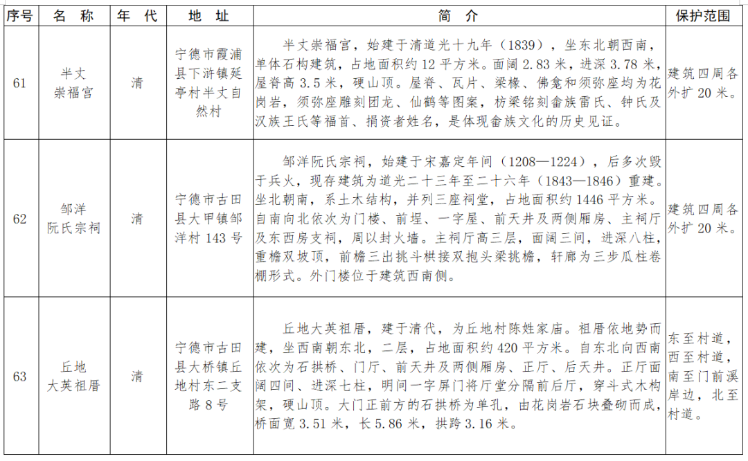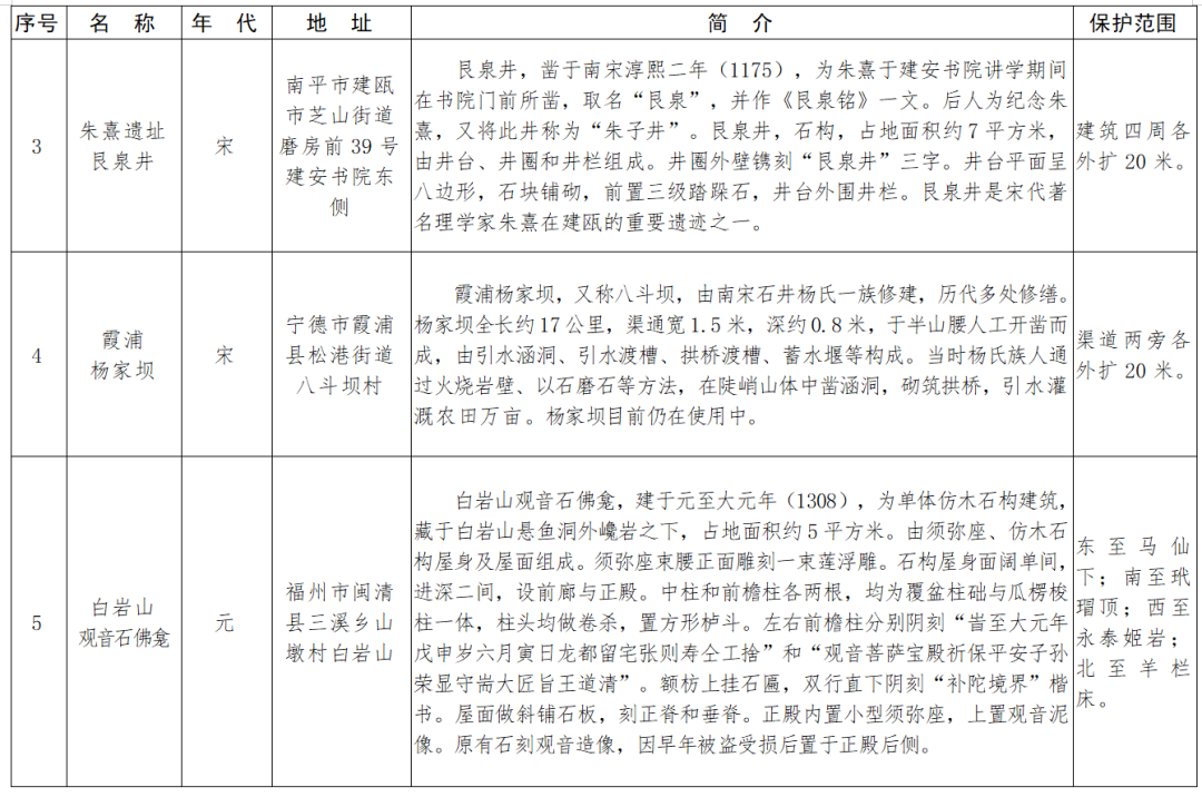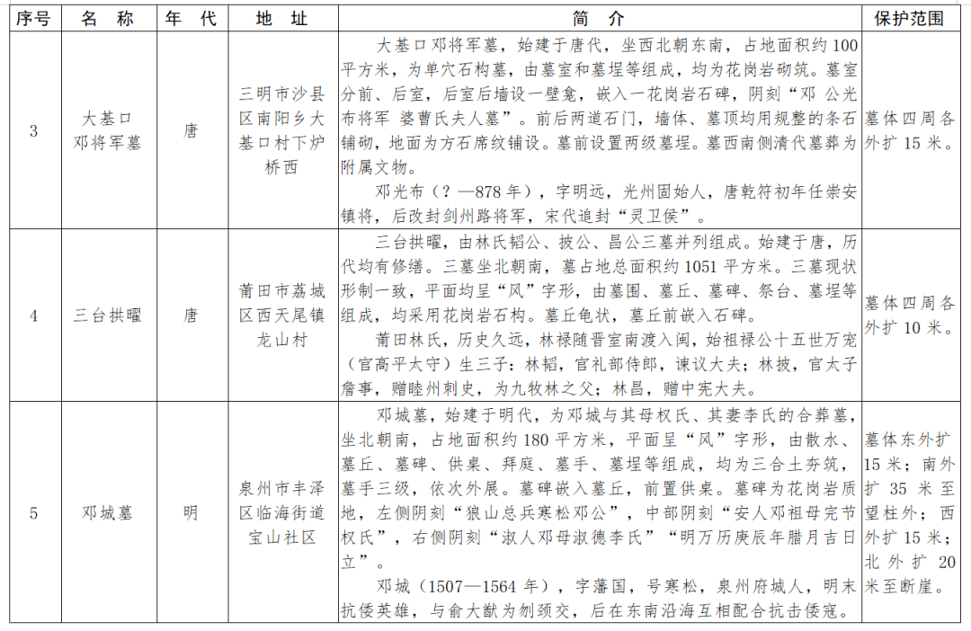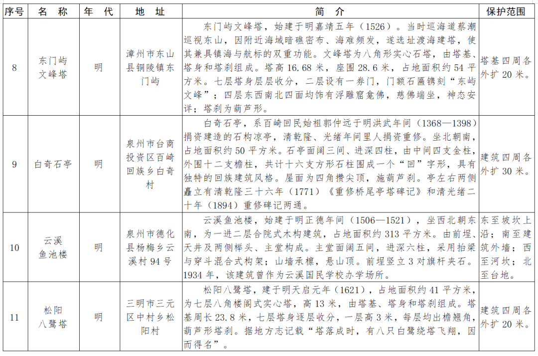 視頻加載中... 近日,福建省人民政府公布了第十一批省級(jí)文物保護(hù)單位名單及保護(hù)范圍,133處(含2處擴(kuò)展項(xiàng)目)榜上有名,其中包括永定區(qū)的5處文物。 據(jù)悉,此次公布的“省保”單位涵蓋古遺址6處、古墓葬8處、古建筑63處、古石刻及造像8處、近代重要史跡及代表性建筑45處、其它1處、擴(kuò)展項(xiàng)目2處。其中,永定區(qū)湖坑鎮(zhèn)奧杳村“慶福樓”被列入古建筑類;永定區(qū)湖坑鎮(zhèn)奧杳村“奧杳鄉(xiāng)蘇維埃政府舊址‘裕德樓’”、永定區(qū)虎崗鎮(zhèn)虎西村“毛澤東舊居‘晏田祠’”、永定區(qū)湖坑鎮(zhèn)奧杳村“奧杳戰(zhàn)地舊址‘裕興樓’”、永定區(qū)洪山鎮(zhèn)尚徑村“廖成美將軍祖居尚徑‘承蔭樓’”等4處被列入近代重要史跡及代表性建筑。 福建省第十一批省級(jí)文物保護(hù)單位名單及保護(hù)范圍 一、古遺址(6處)