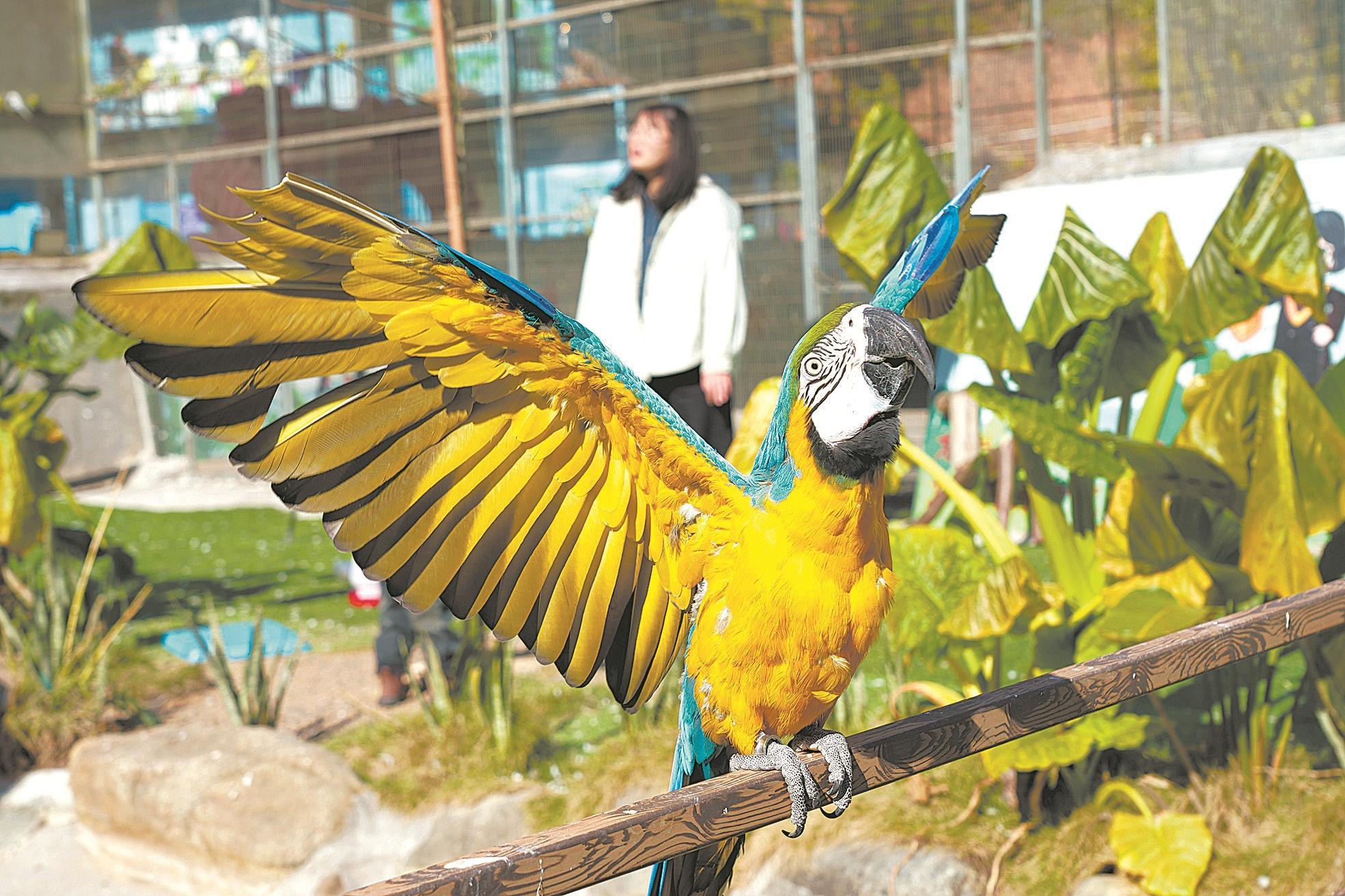 “這里的鸚鵡太可愛啦。有的會模仿人說話,有的會玩各種有趣的游戲,特別聰明。”前來游玩的小朋友廖易妍說。
