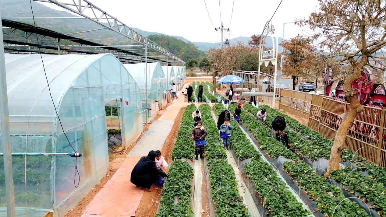 “基地日均接待游客200余人次,單日銷售額最高突破8000元,草莓品質好、銷路暢,我們的收入也越來越穩。”草莓基地負責人吳允燈說,眼下正值草莓采摘旺季,基地的人氣與銷量雙雙走高。 作為第二批省級鄉村振興示范村,撫溪村坐擁土壤肥沃、毗鄰鎮區交通便利的天然稟賦。錨定強村富民核心目標,該村多次組織村干部外出考察取經,邀請農業專家實地把“脈”論證,最終選定草莓種植作為壯大村集體經濟、帶動群眾增收的主導產業。2024年初,該村盤活20余畝閑置土地,整合鄉村振興專項補助資金,建成6座標準溫室大棚并配套現代化滴灌設備,引進“玫瑰”“法蘭蒂”等優質草莓品種。同時創新玉米、花生、草莓輪種模式,全程施用有機肥、推行蜜蜂授粉綠色種植技術,從源頭筑牢草莓品質與食用安全防線。 “我們堅持無公害生態種植,不打農藥、只施有機肥,草莓口感好、品質好才能留住游客。”吳允燈表示,基地還帶動村里10多戶鄉親實現家門口務工,讓大家的日子越過越有奔頭。