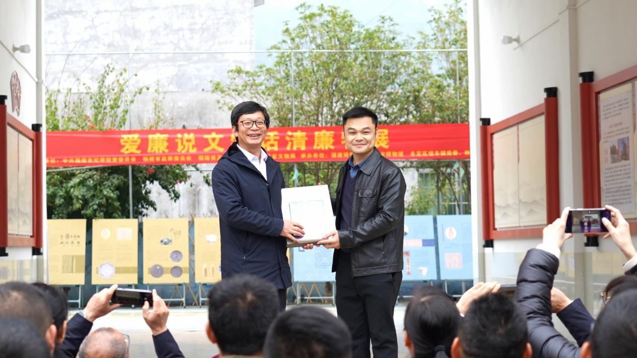 “東中書苑”是一座融傳承客家文脈精神與鄉村文化振興實踐的文化地標,書苑內設有特色閱讀角、書畫展覽,常態化開展讀書分享、經典誦讀、客家山歌傳習、非遺技藝展示、鄉村振興主題研討等各式活動。 活動現場,樓建龍院長懷著對鄉村文化建設的熱忱與支持,為“東中書苑”慷慨贈書兩百冊及福建博物院的文創產品,進一步豐富了書苑的藏書種類和數量,從蘊含著古人智慧的四書五經到展現當代科學前沿的新知,從記錄客家先民遷徙史詩的珍貴文獻到反映鄉村振興實踐的生動篇章,千余卷藏書如時光之河靜靜流淌,為村民提供了更廣闊的知識視野。