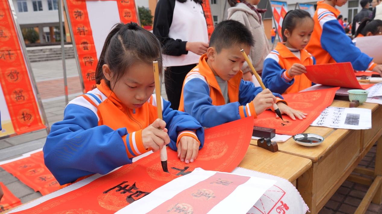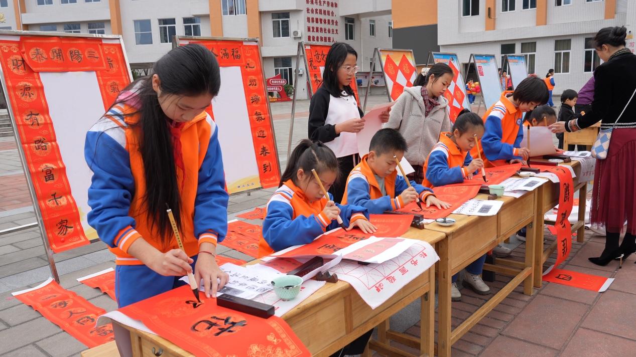 活動設置趣味打卡體驗環節與主題誦讀展示兩大板塊,讓師生與家長在沉浸式參與中感受經典魅力與文化溫度。在趣味打卡環節,學校于閱讀廣場精心設置“福韻書香·經典共讀”“客風傳承·童謠共賞”“家校共讀·溫情打卡”三大主題點位。學生與家長攜手合作,進行經典福句齊聲誦讀、客家童謠方言誦讀、親子閱讀感悟分享等,通過閱讀活動集齊印章即可兌換“福客閱讀大禮包”。同時進行寫春聯,拓福,剪福字等內容,讓師生和家長們在喜慶節日氛圍中傳承中華傳統文化。
